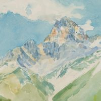 Eduard Fürstenau (1862 Marburg – 1938 Berlin), Alpine landscape with view of high mountain, 1924, Watercolor