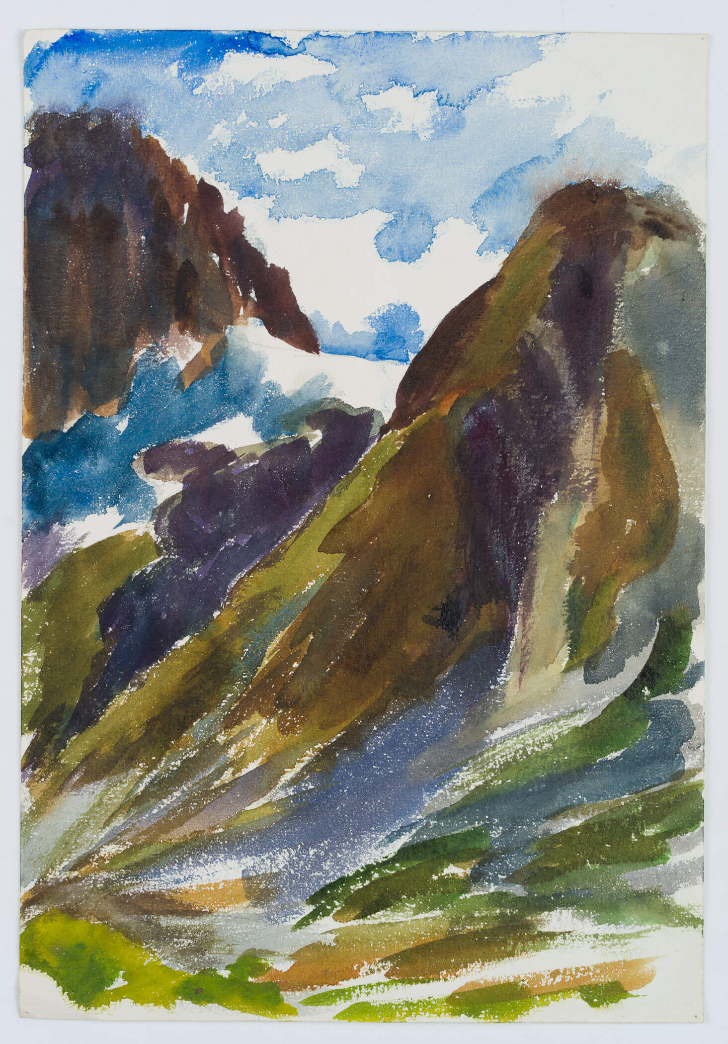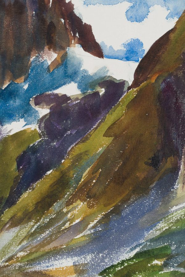Eduard Fürstenau (1862 Marburg – 1938 Berlin), Alpine landscape with rock massifs, c. 1920, Watercolor
