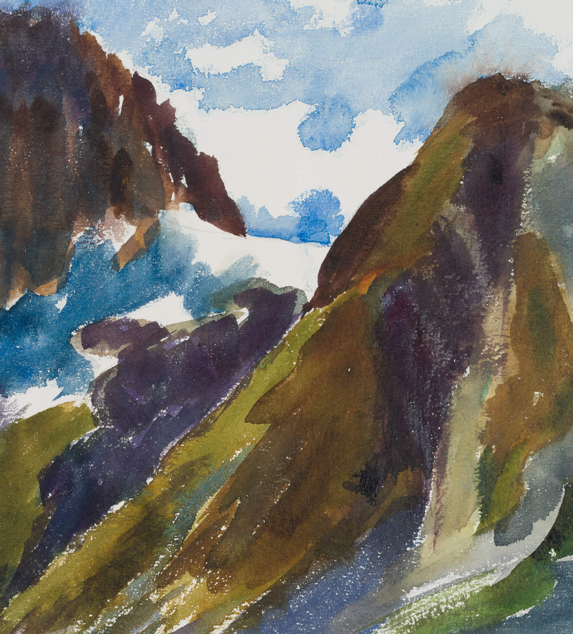 Eduard Fürstenau (1862 Marburg – 1938 Berlin), Alpenlandschaft mit Felsmassiven, um 1920, Aquarell