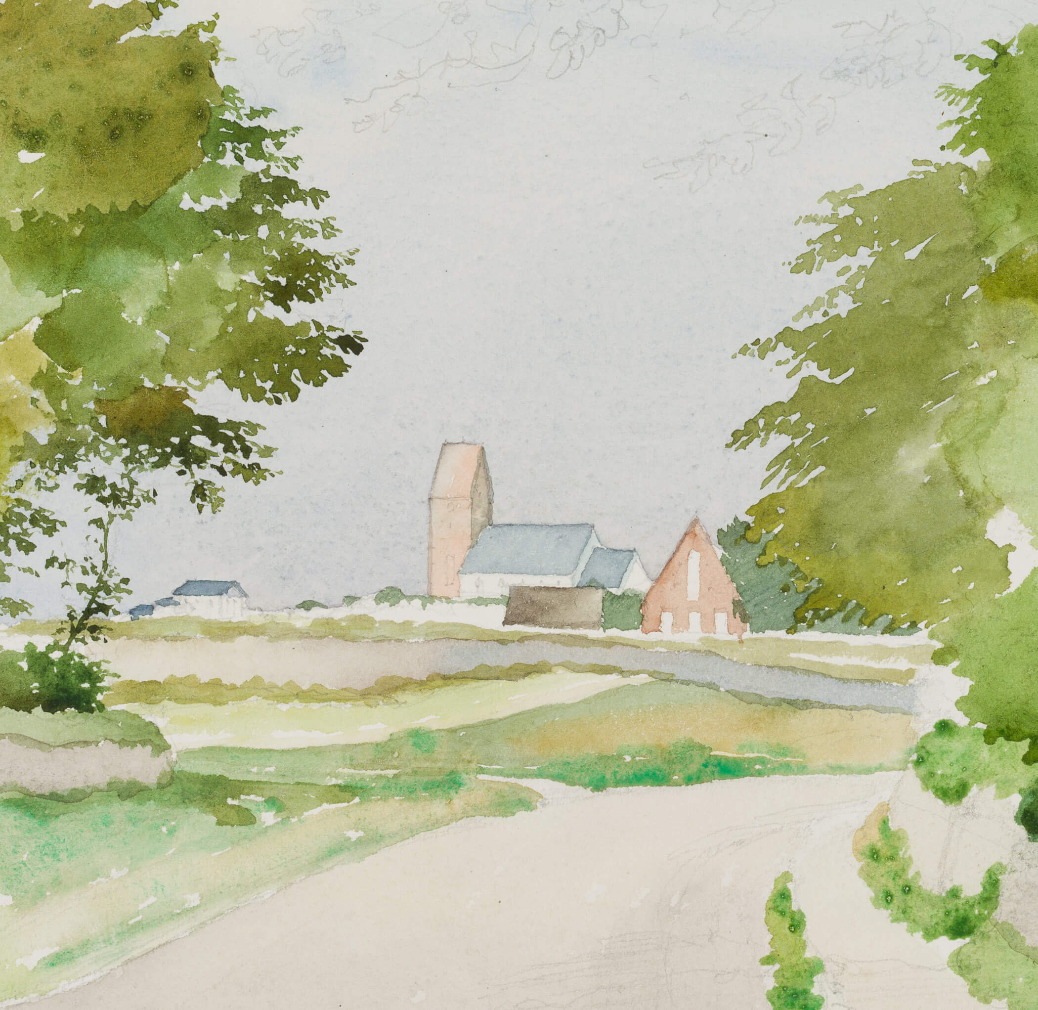 - Keywords: Country road, Summer, North Germany, Village, Church, Calm, Nature, 20th century, Romanticism, Landscapes, Germany,