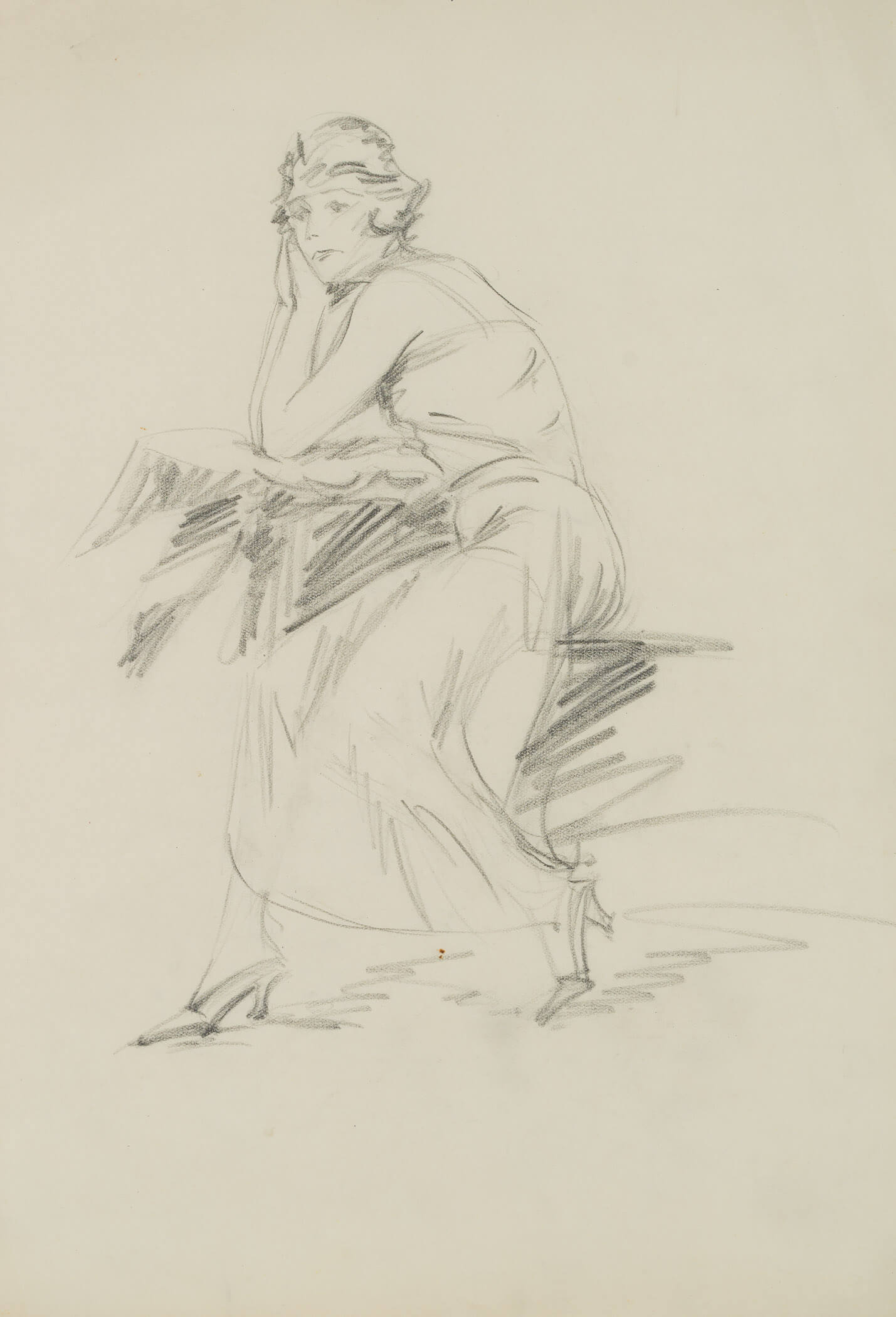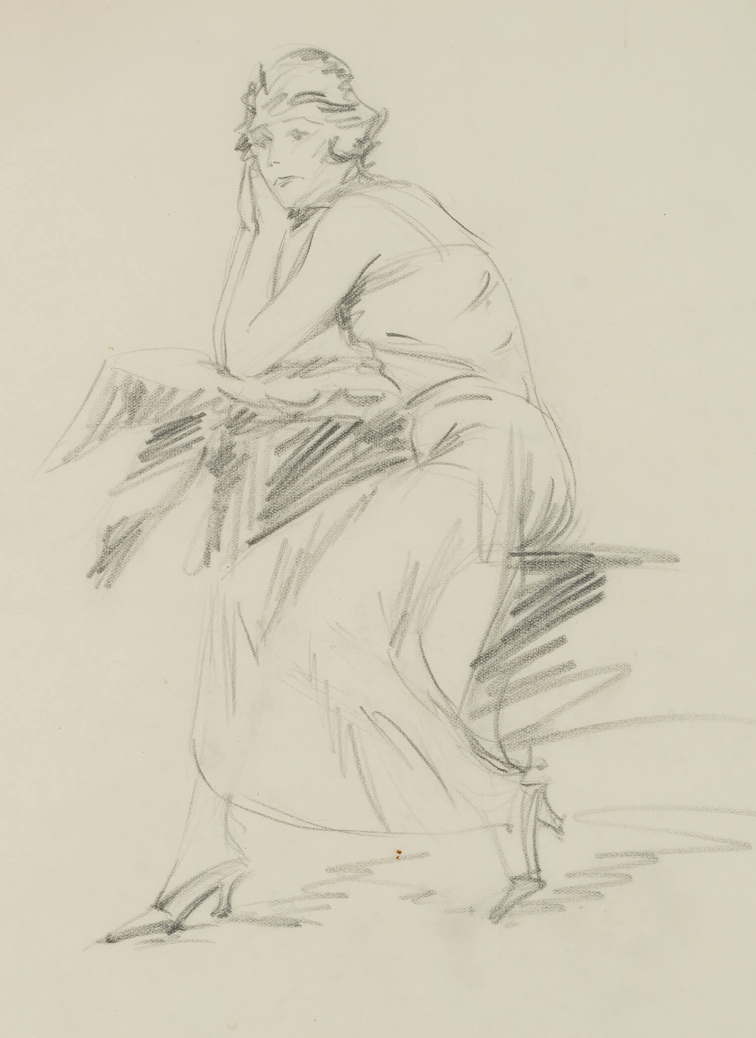 Eduard Fürstenau (1862 Marburg – 1938 Berlin), Posture study Sitting lady, full body, c. 1920, Pencil