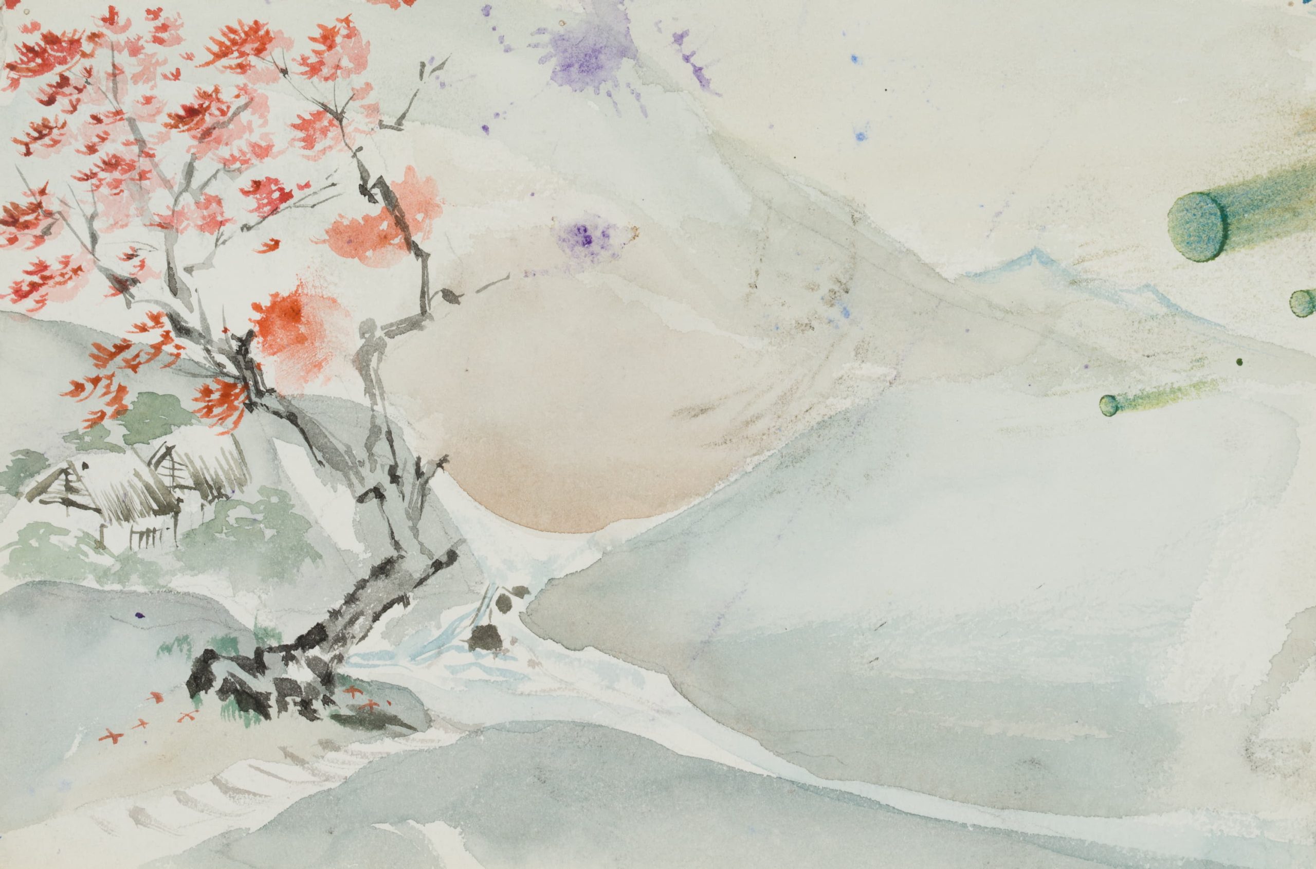 • Beschreibung: Sehr schönes, asiatisch anmutendes Aquarell