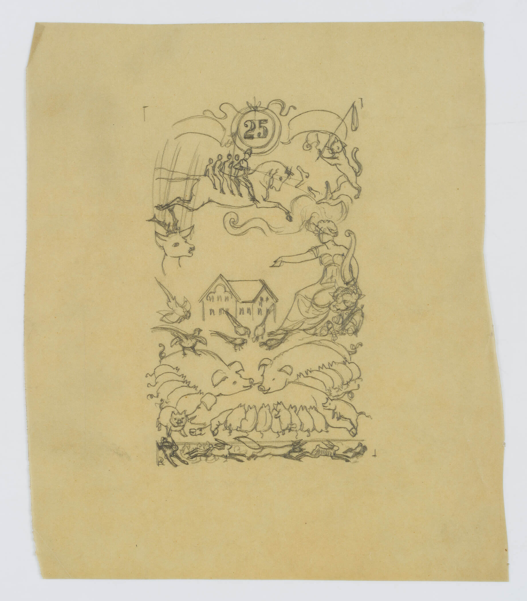 Eduard Fürstenau (1862 Marburg – 1938 Berlin), 25th Anniversary Card Template, c. 1930, Pencil