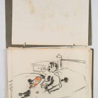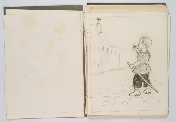 - Description: Scenes from childhood: Grandfather feeding pigeons. A doll brought to life. A father combing his daughter’s hair. A little boy sleeping in his parents’ big bed. In this portfolio, the artist transports himself back to childhood, which seems to feel exciting, enchanted and well protected. A wonderful portfolio of pencil and charcoal sketches, some of which have a narrative character and reveal the artist’s empathetic streak.