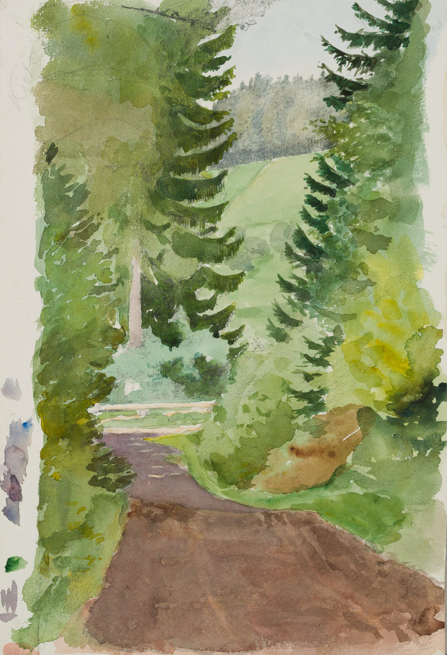 Eduard Fürstenau (1862 Marburg – 1938 Berlin), Country road near Schweigmatt, c. 1920, Watercolor