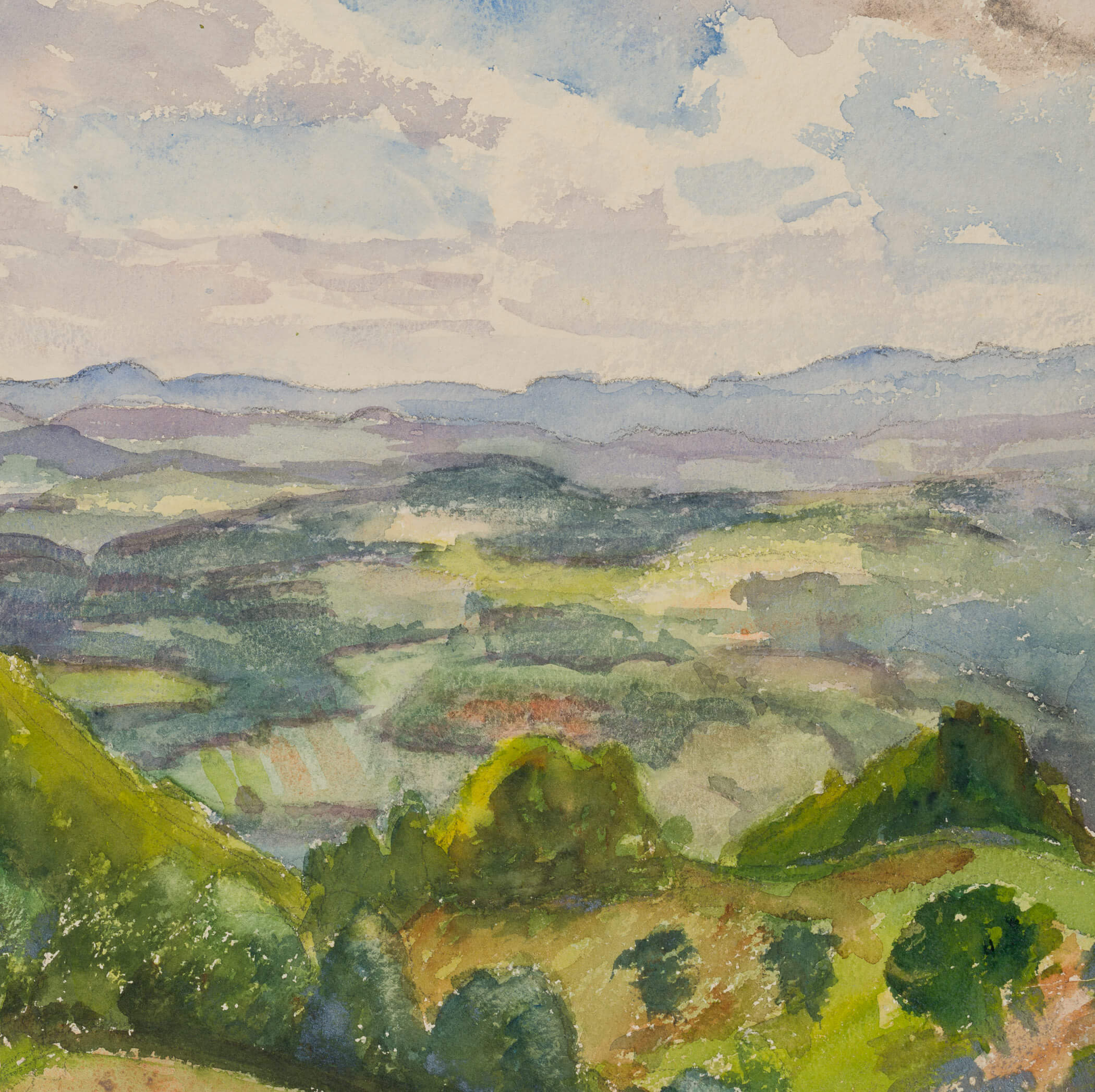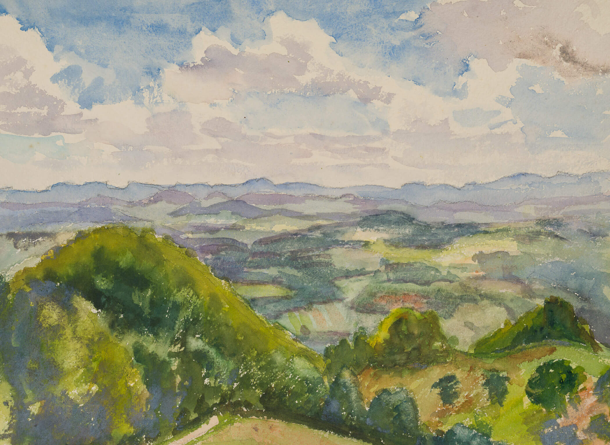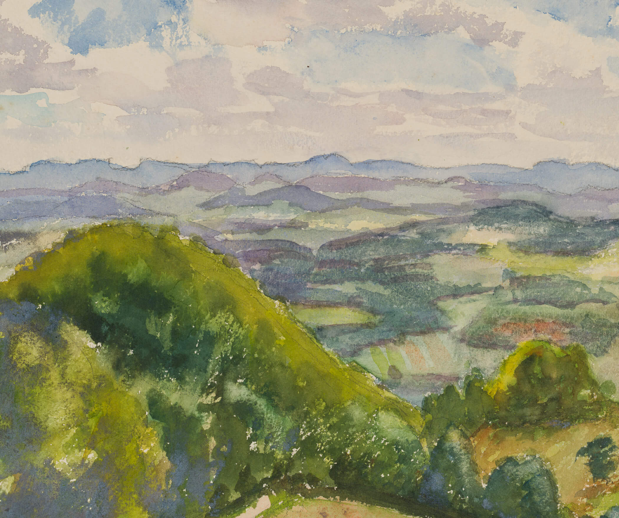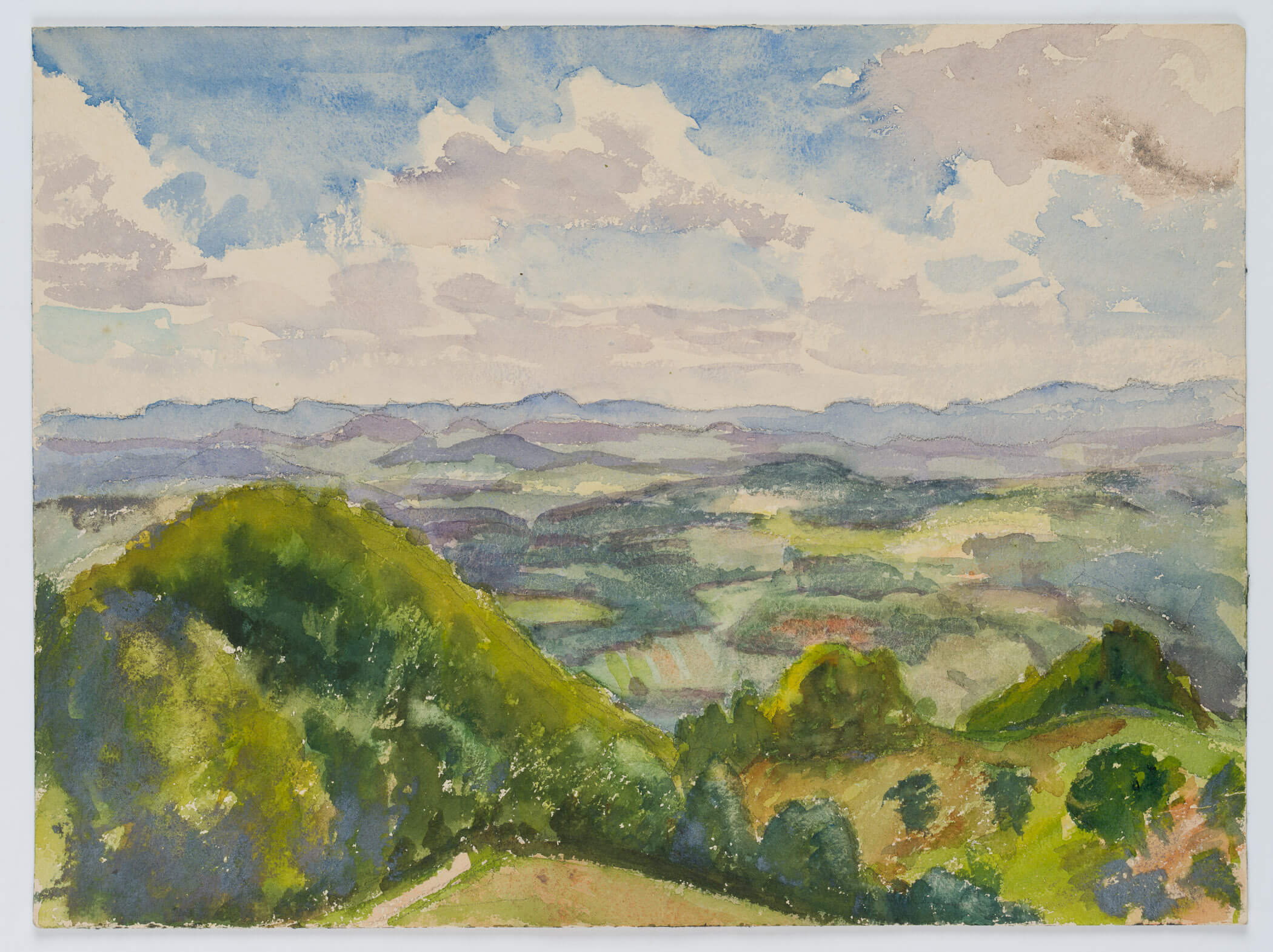 Eduard Fürstenau (1862 Marburg – 1938 Berlin), Panoramic view over hilly landscape, c. 1920, Watercolor