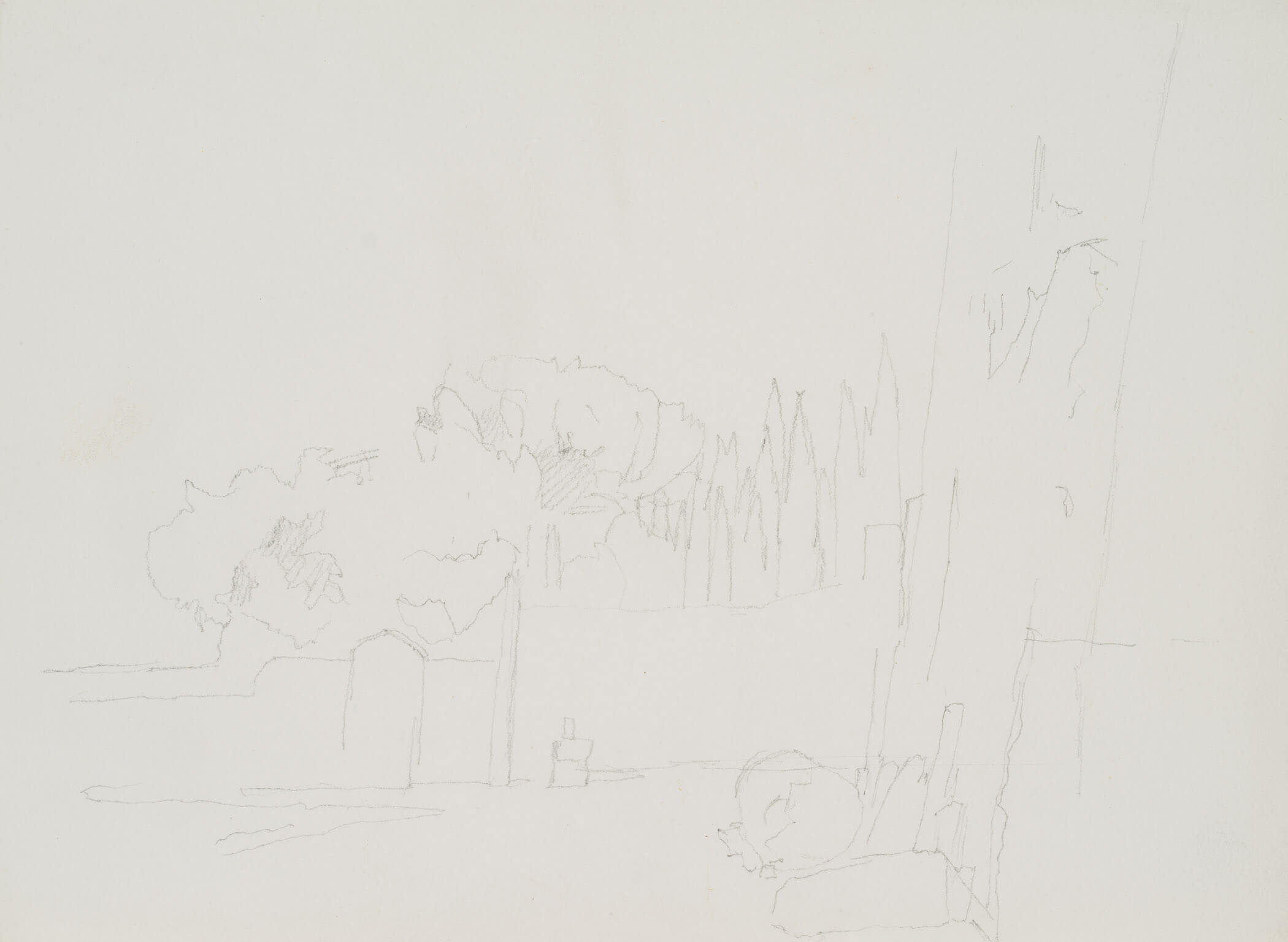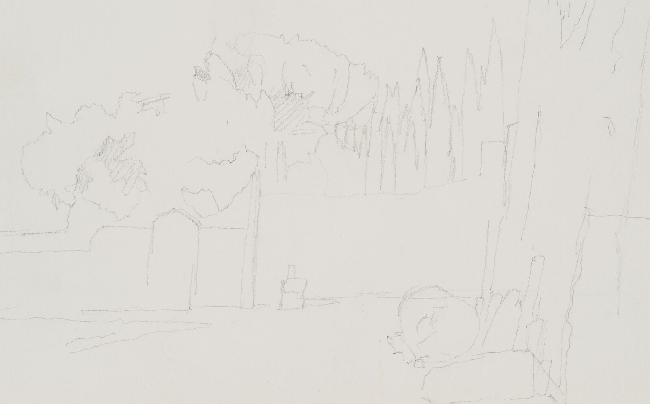 Eduard Fürstenau (1862 Marburg – 1938 Berlin), Sketch of a park, c. 1920, Pencil