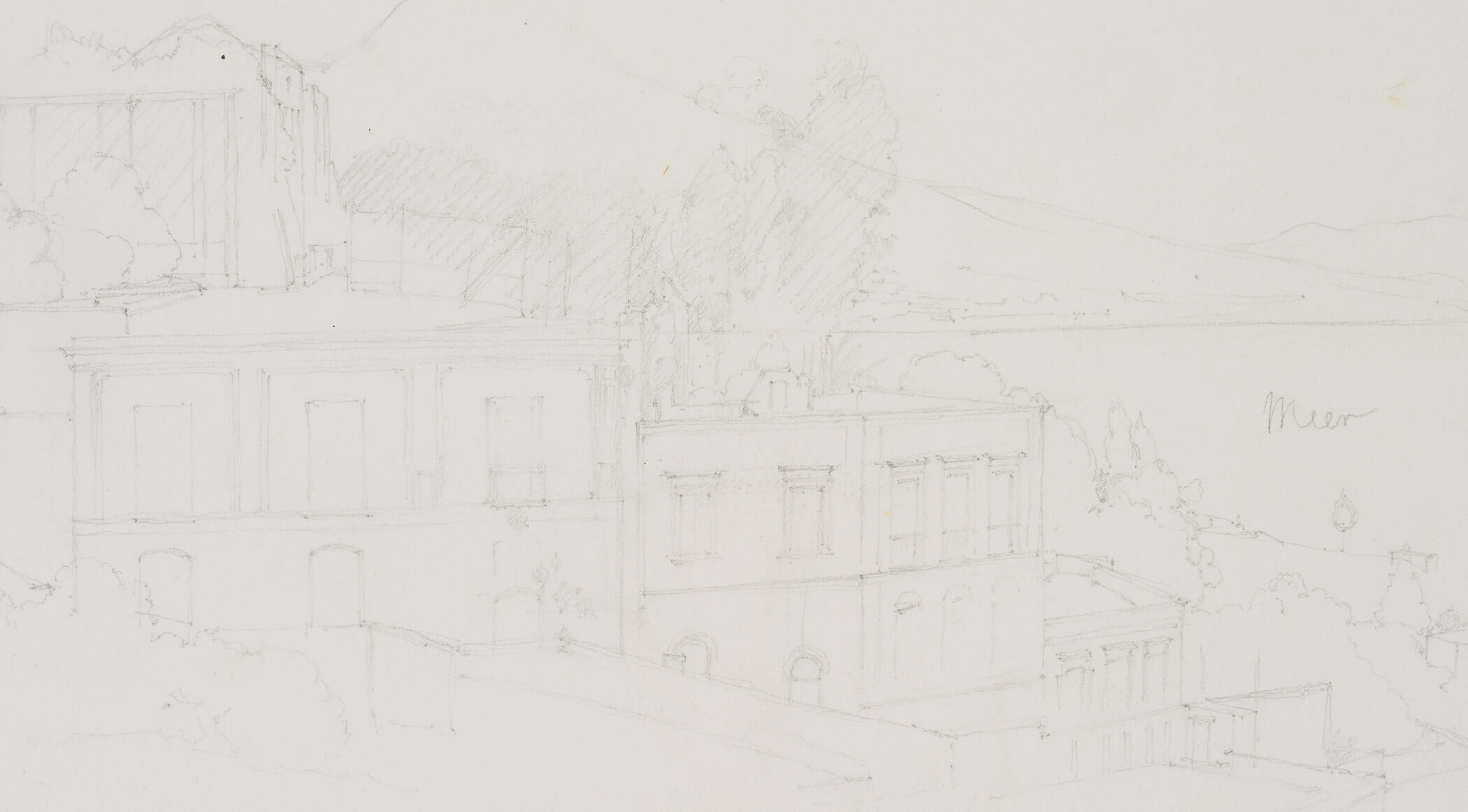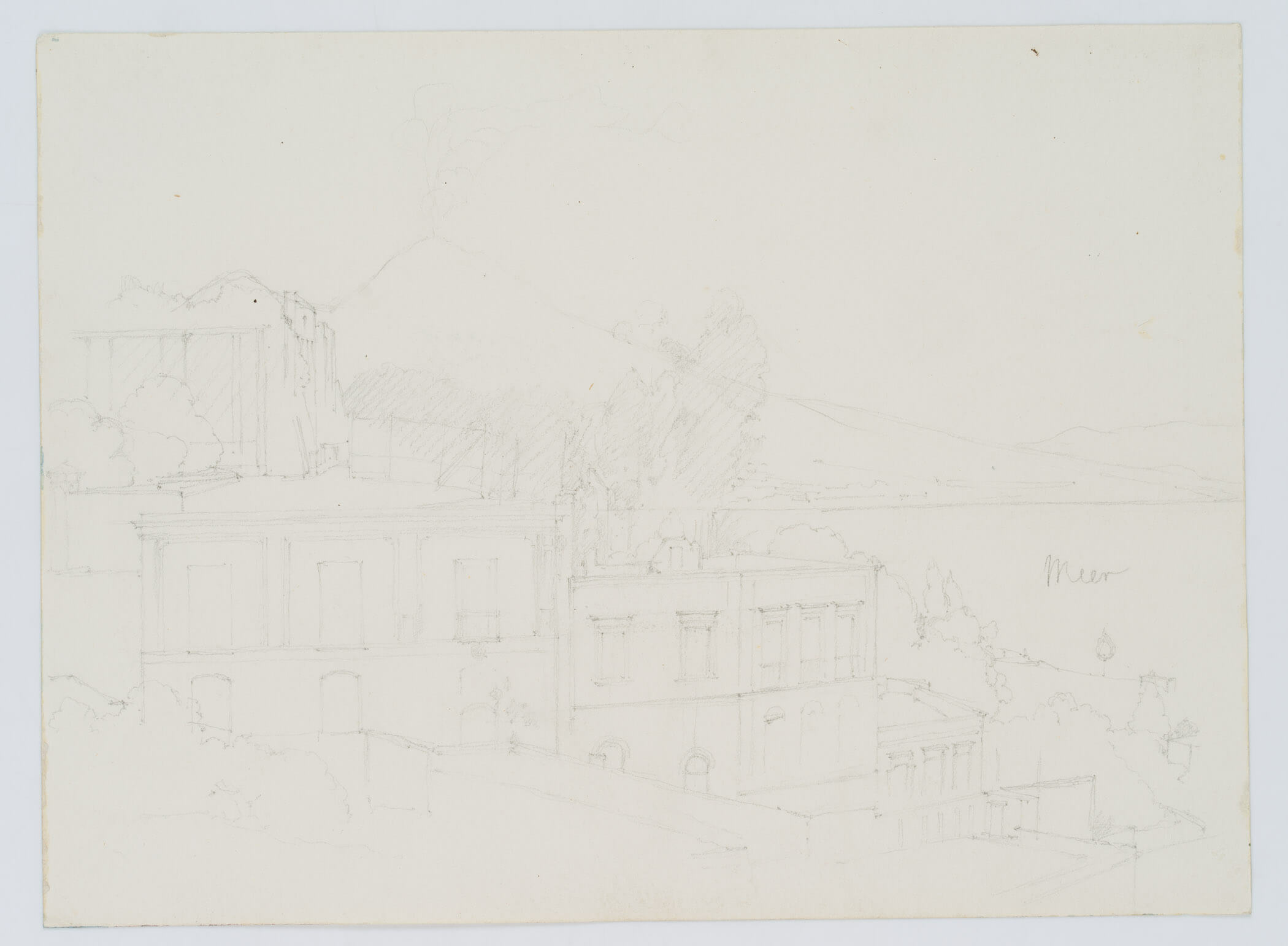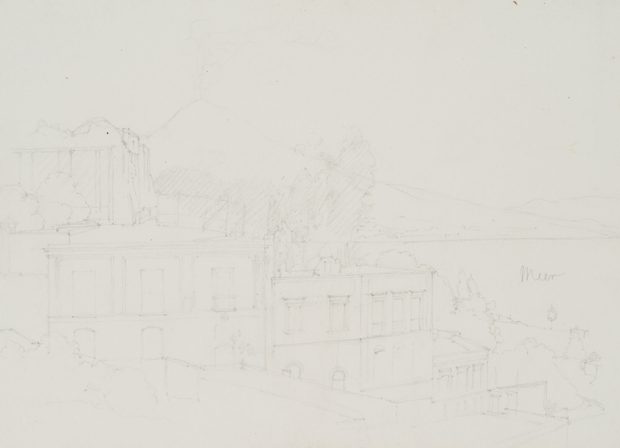 - Beschreibung: Architekturskizze einer Villa an der Küste bei Neapel