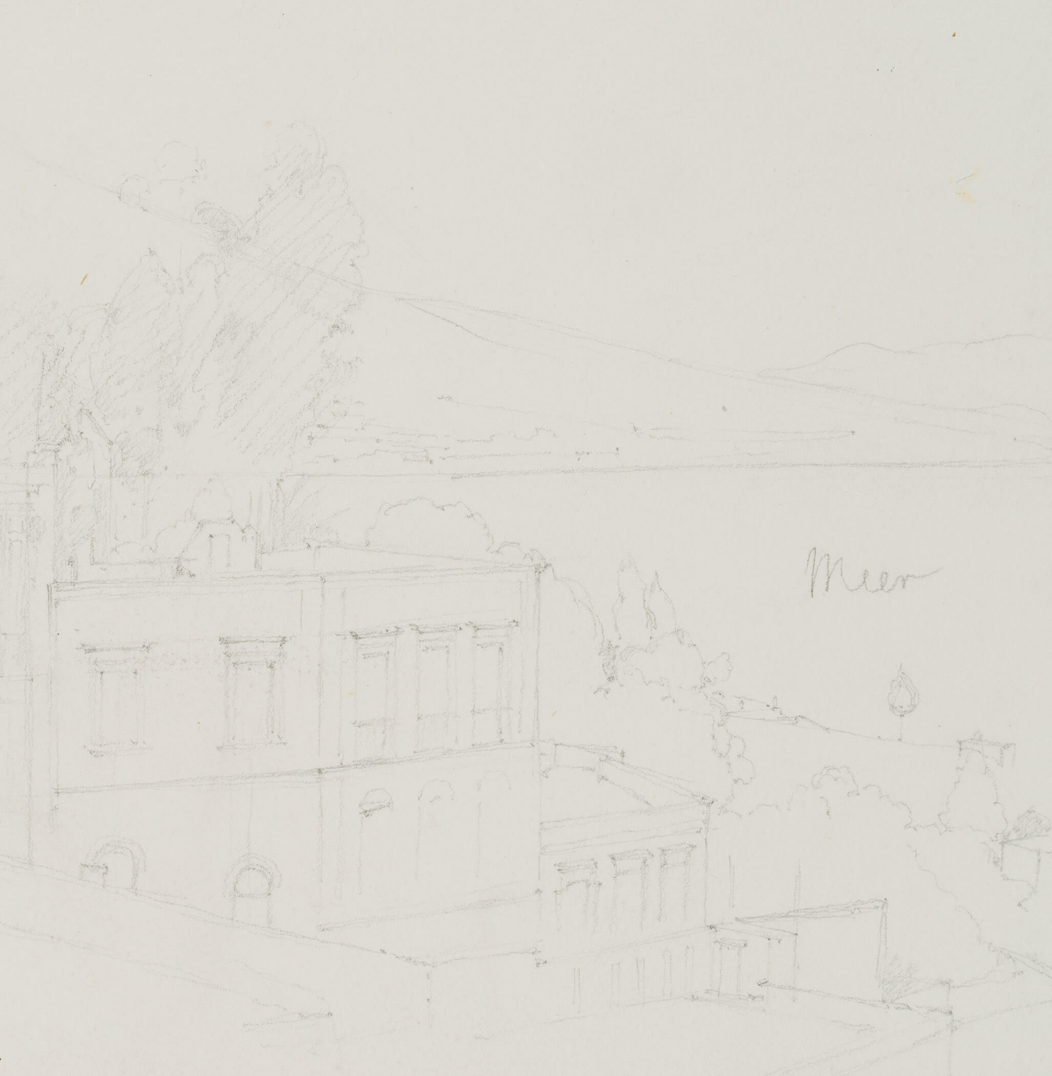 Eduard Fürstenau (1862 Marburg – 1938 Berlin), Villa on the coast near Naples, c. 1920, Pencil