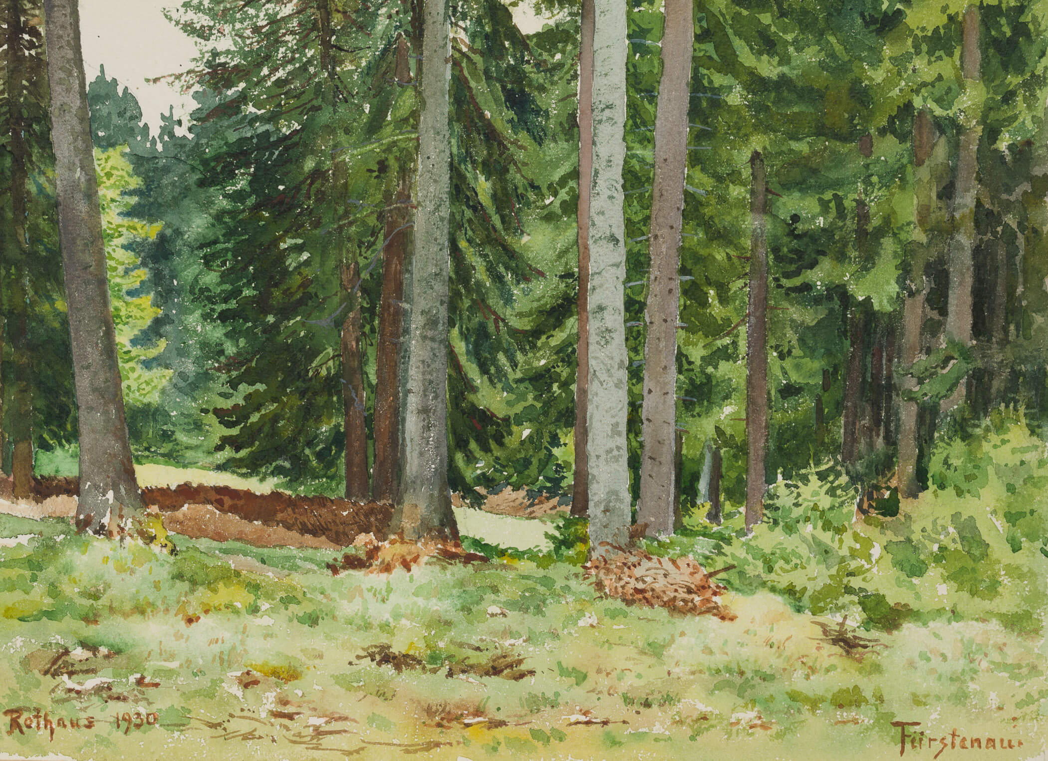 - Inscription: Lower middle signed: “Rothaus 1930 / Fürstenau”.