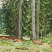 Eduard Fürstenau (1862 Marburg – 1938 Berlin), Sommerliches Waldstück bei Rothaus, 1930, Aquarell