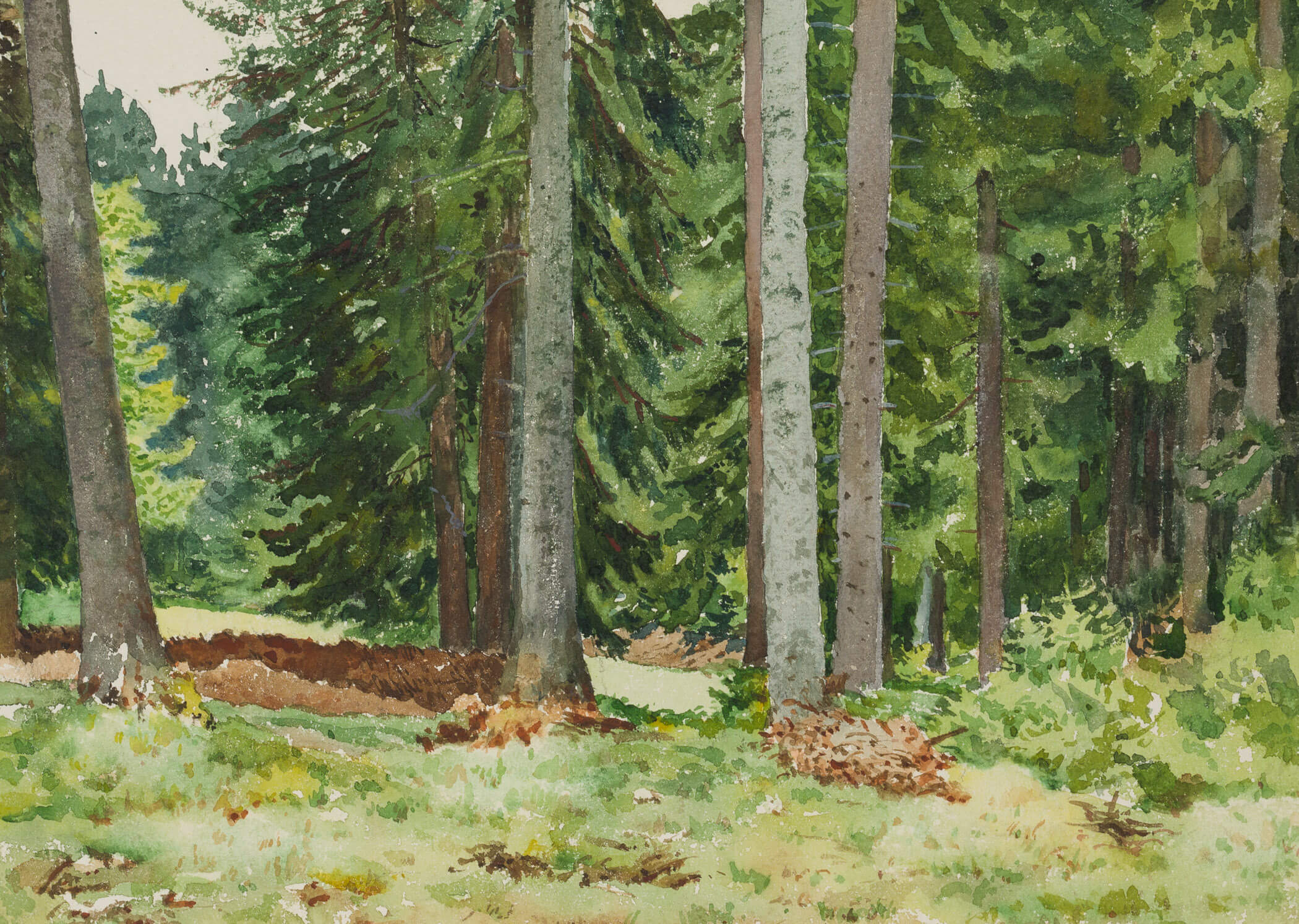 Eduard Fürstenau (1862 Marburg – 1938 Berlin), Woodland near Rothaus, 1930, Watercolor