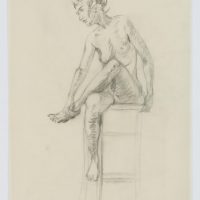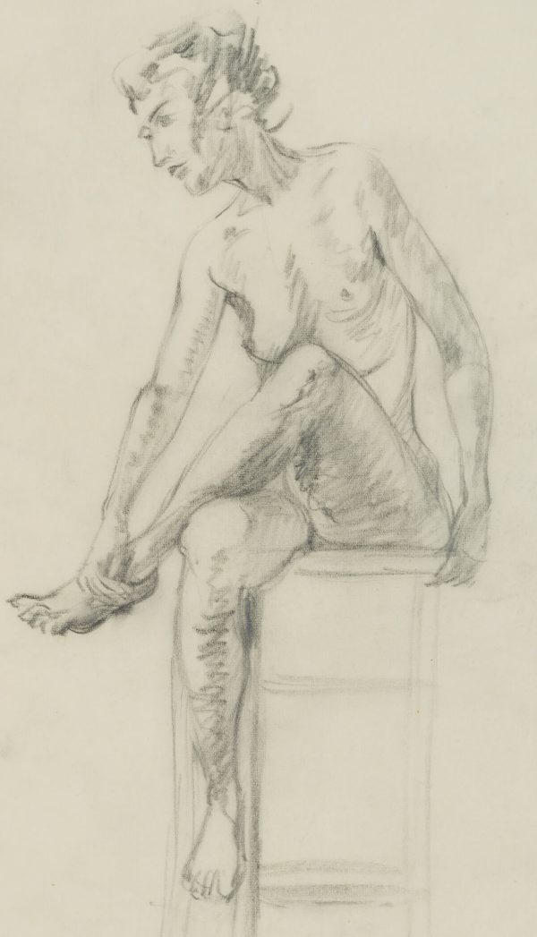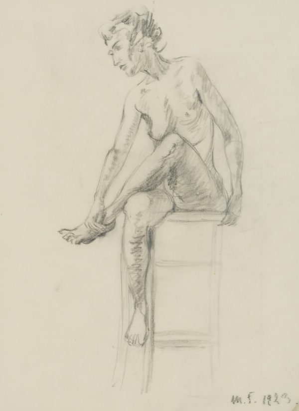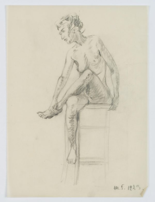 Eduard Fürstenau (1862 Marburg – 1938 Berlin), Female nude study, sitting on a stool, 1923, Pencil