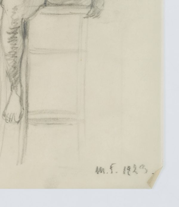 Eduard Fürstenau (1862 Marburg – 1938 Berlin), Weibliche Aktstudie. Auf einen Hocker sitzend, 1923, Bleistift