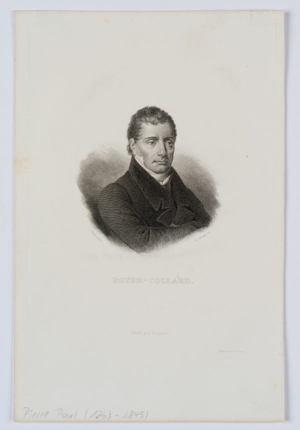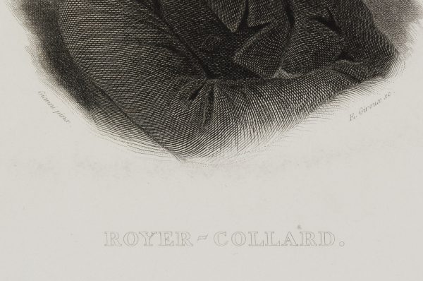 - Description: Steel engraving by Èmile Giroux, signed and inscribed below the image: “ROYER-COLLARD Gianni pinx. E. Giroux sc.”. The bust shows P. P. Royer Collard as a young man. He has his arms crossed over his chest and is looking pensively into the distance. Royer-Collard (1763 – 1836) was a philosopher and statesman. He supported the revolution and became a member of the Paris municipal council. In 1811 he became professor of philosophy at Paris University. Èmile Giroux ( c. 1830 – c. 1860) was a French engraver.