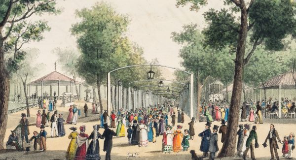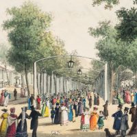 Eduard Gurk (1801 Vienna – 1841 Jerusalem), Promenade in front of the no longer preserved Karolin Gate, formerly ‘Seilerstättentor’, Vienna, 19th century, Aquatint