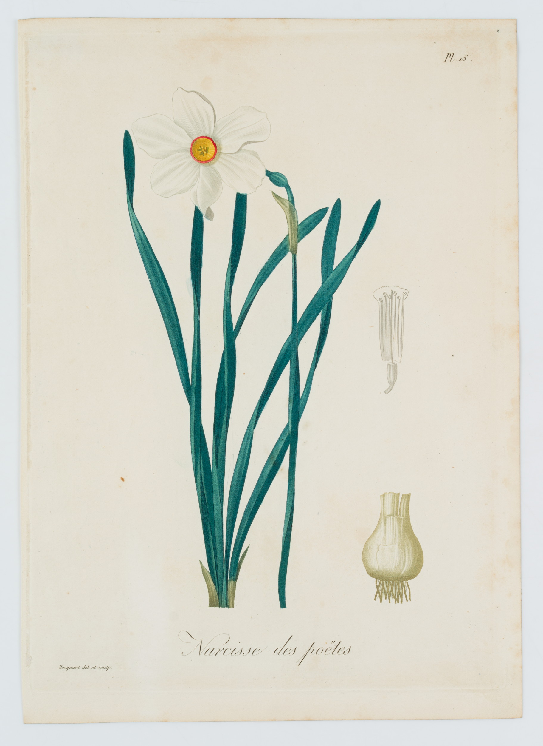 Édouard Auguste Patrice Hocquart (1789 Tournai – 1870 Jouarre), Narcissus of the poets (Weiße Narzisse, Narcissus poeticus), c. 1821, Copper engraving