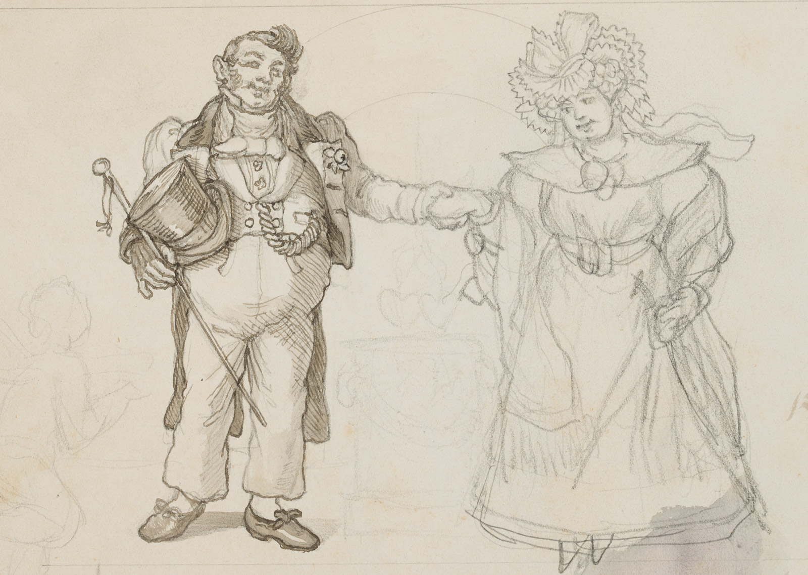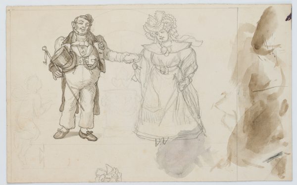 Eduard Valentin Joseph Karl Ille (1823 München – 1900 ebd.), “Darf ich bitten?”, Tanzendes Paar, 19. Jahrhundert, Federzeichnung