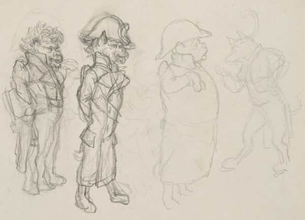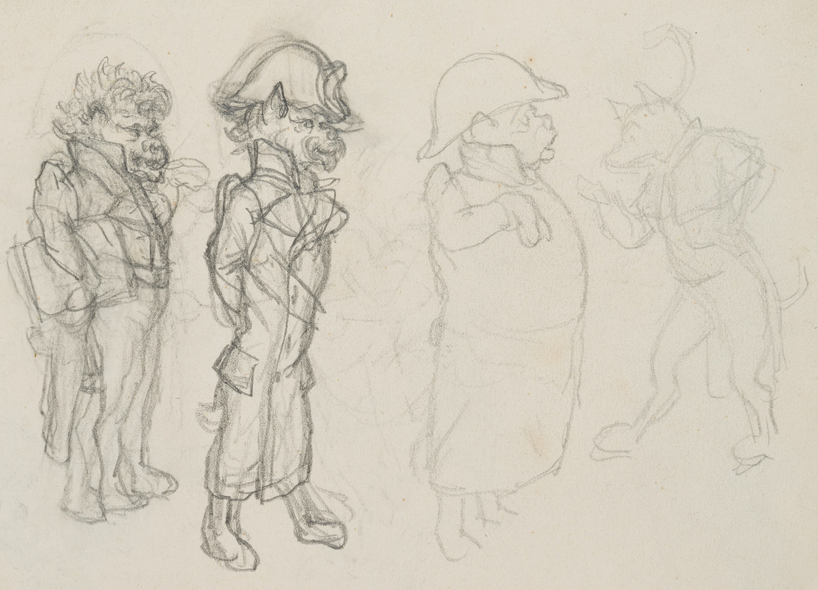 - Description: Verso with another drawing; from the hand of the Munich artist Eduard Ille; Ille was a painter and talented draughtsman who knew how to use his talent in the fields of illustration, caricature and writing.