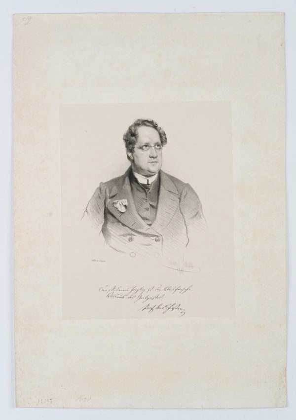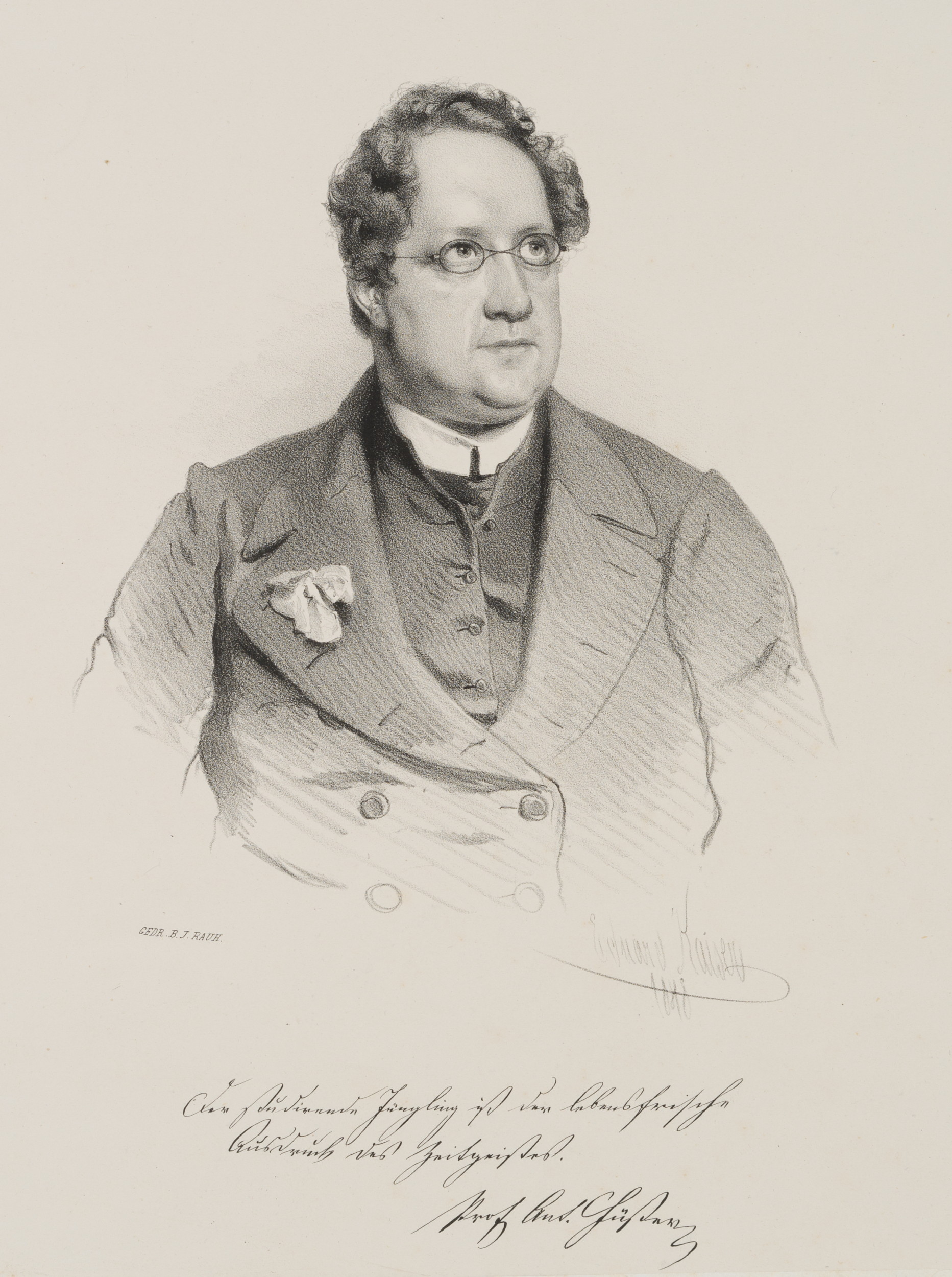 Eduard Kaiser (1820 – 1895 ), Portrait des Prof. Anton Füster als Bruststück mit Brille, 1848, Lithographie