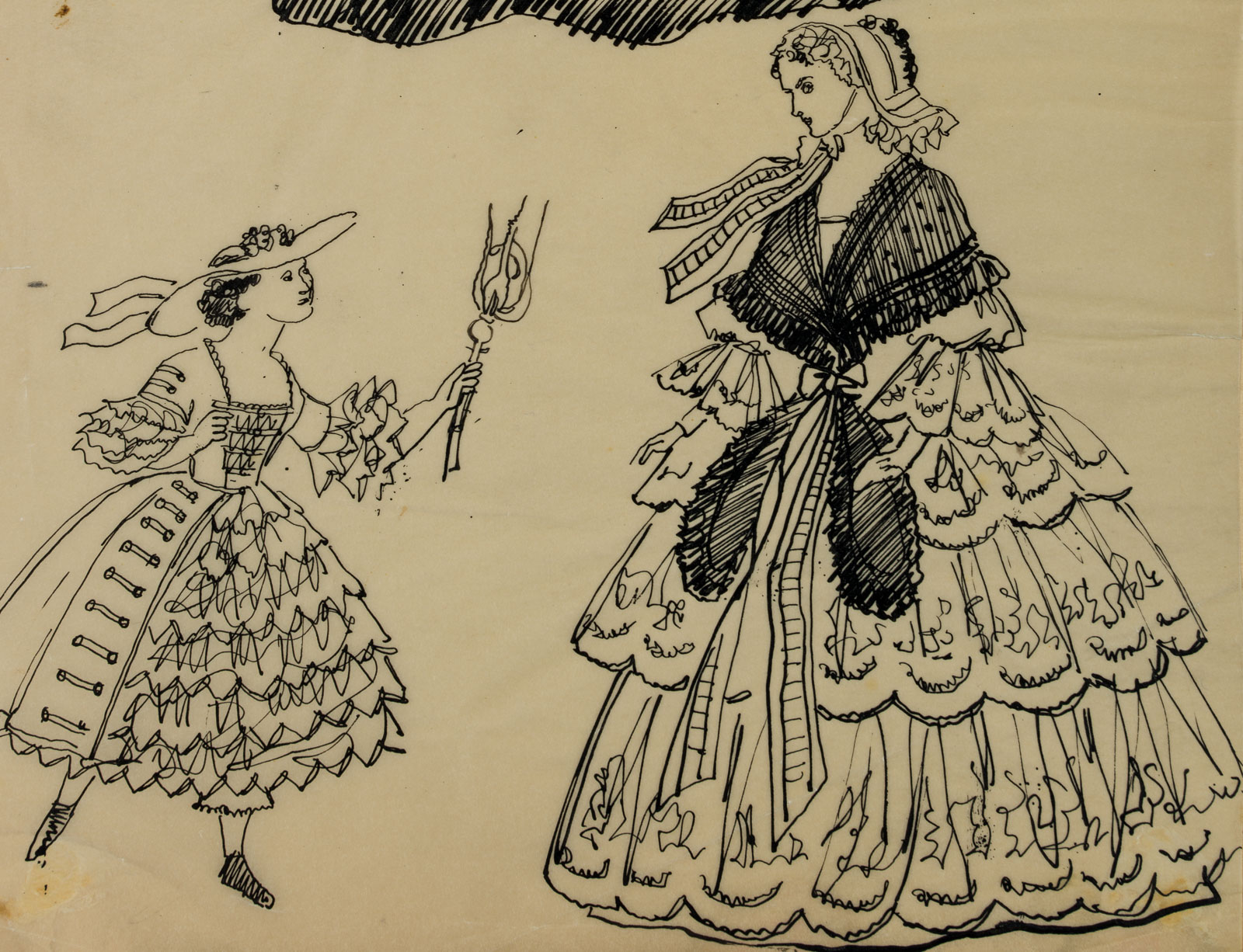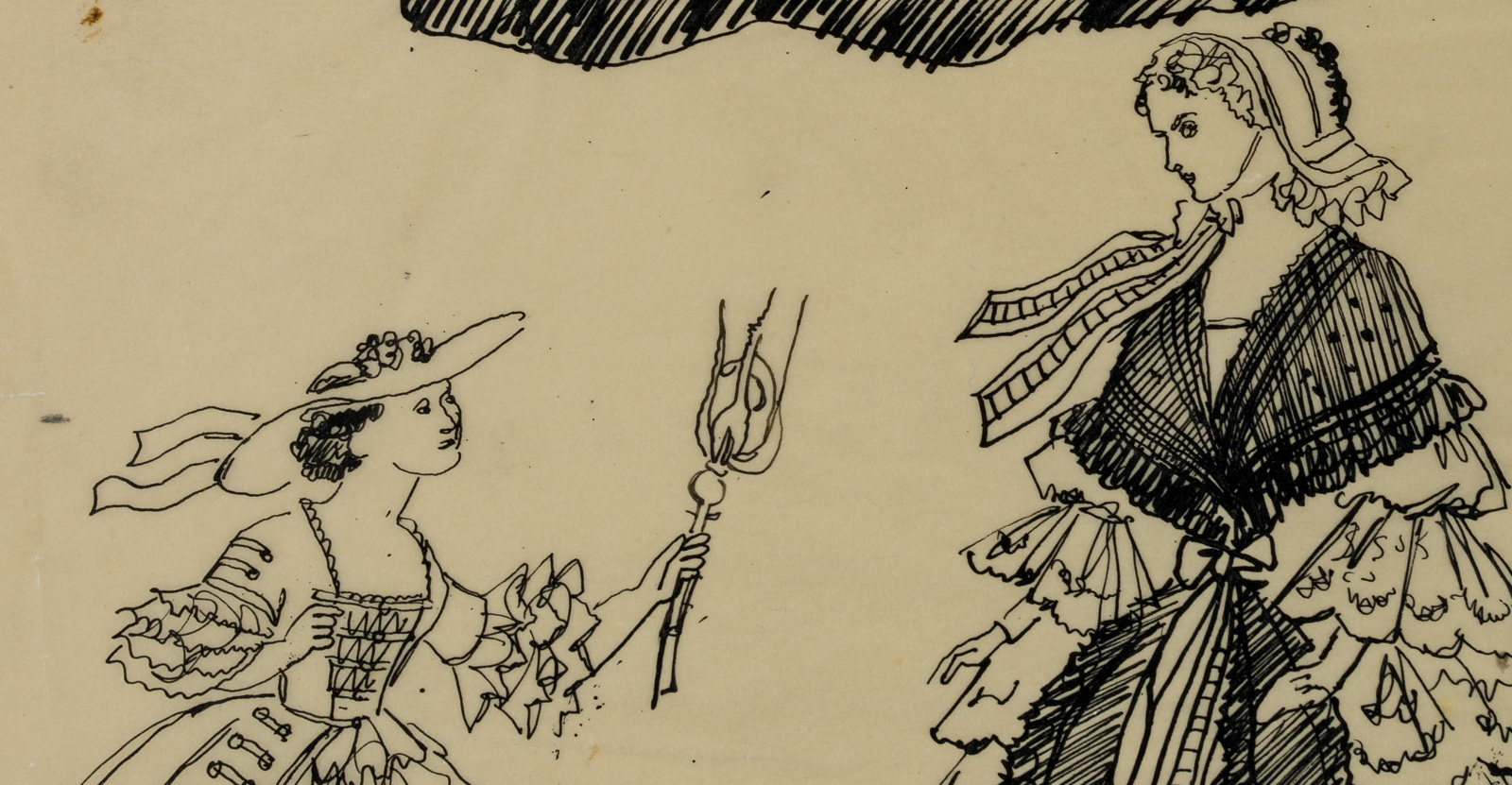 Erhard Klepper (1906 Beuthen – 1980 Berlin), Elegante Damen in Krinolinenmode, , Tusche