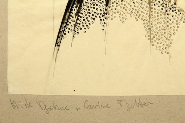 - Technik: Federzeichnung auf Transparentpapier, montiert auf Papier