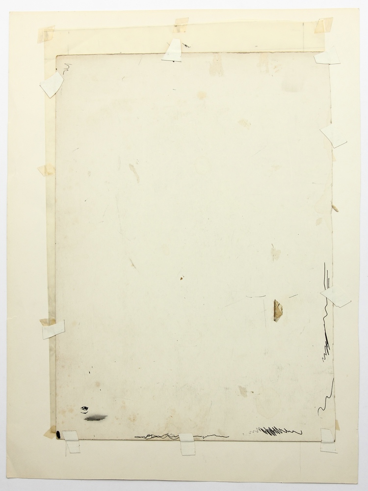 - Technik: Lavierte Federzeichnung auf Transparentpapier, montiert auf Papier