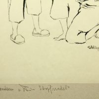 - Technik: Federzeichnung auf Transparentpapier, montiert auf Papier