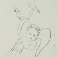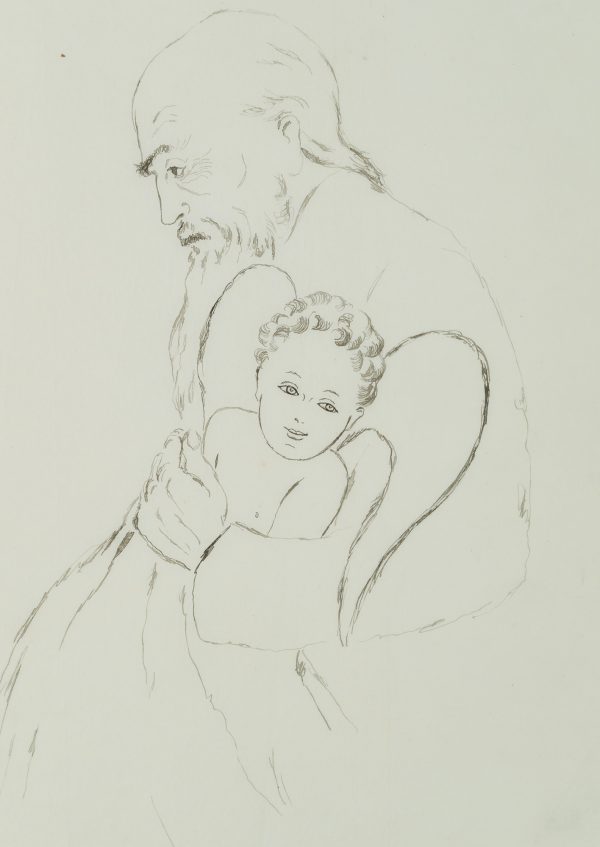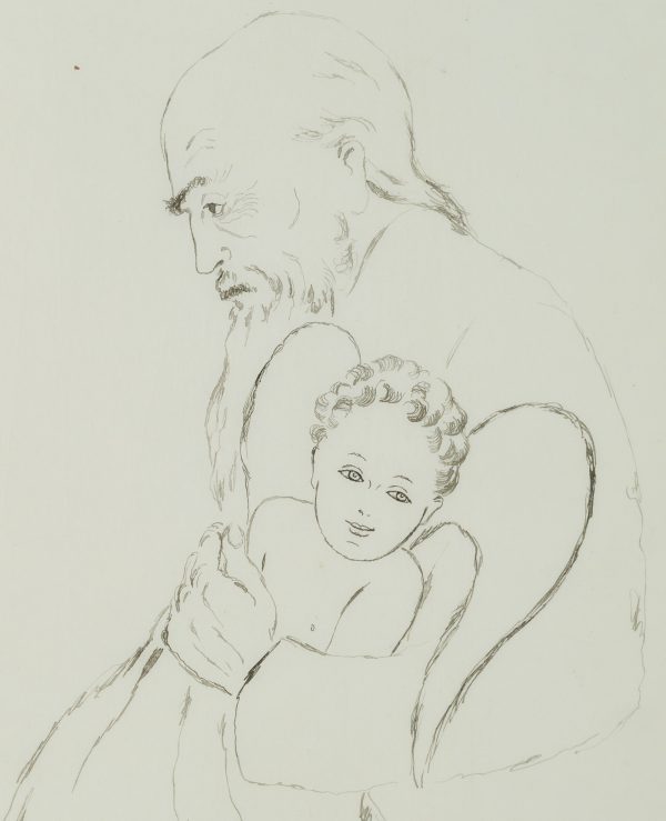 Erhard Klepper (1906 Bytom – 1980 Berlin), Man holding an angel in his arms, , Indian ink