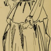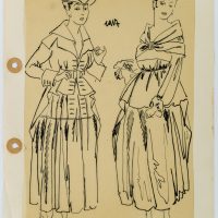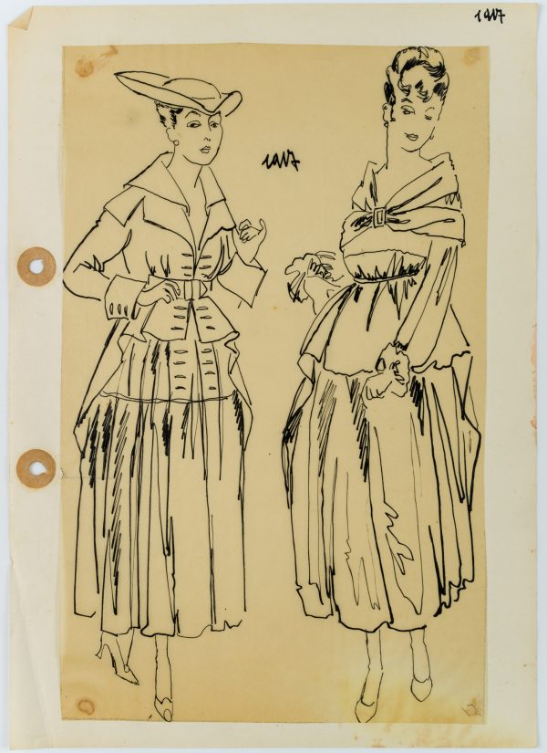 The drawings were partly made for the publication “150 Jahre Weltgeschichte für die Dame. Nach zeitgenössischen Berichten und Vorlagen” (150 years of world history for the lady), which dealt with the fashion of the 19th and early 20th century. It was published in 1955 under the editorship of Erhard KLEPPER.