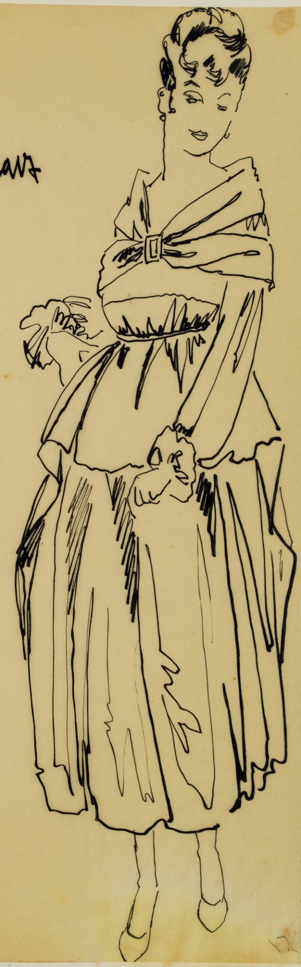 Erhard Klepper (1906 Beuthen – 1980 Berlin), Modestudie, Frauenmode, , Tusche