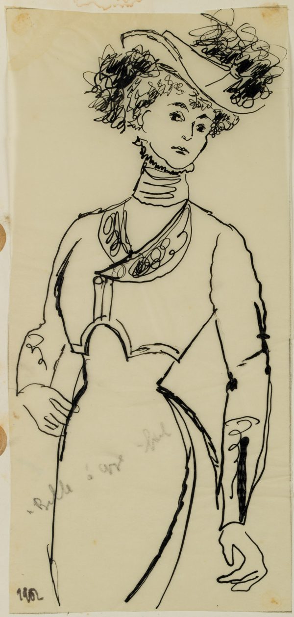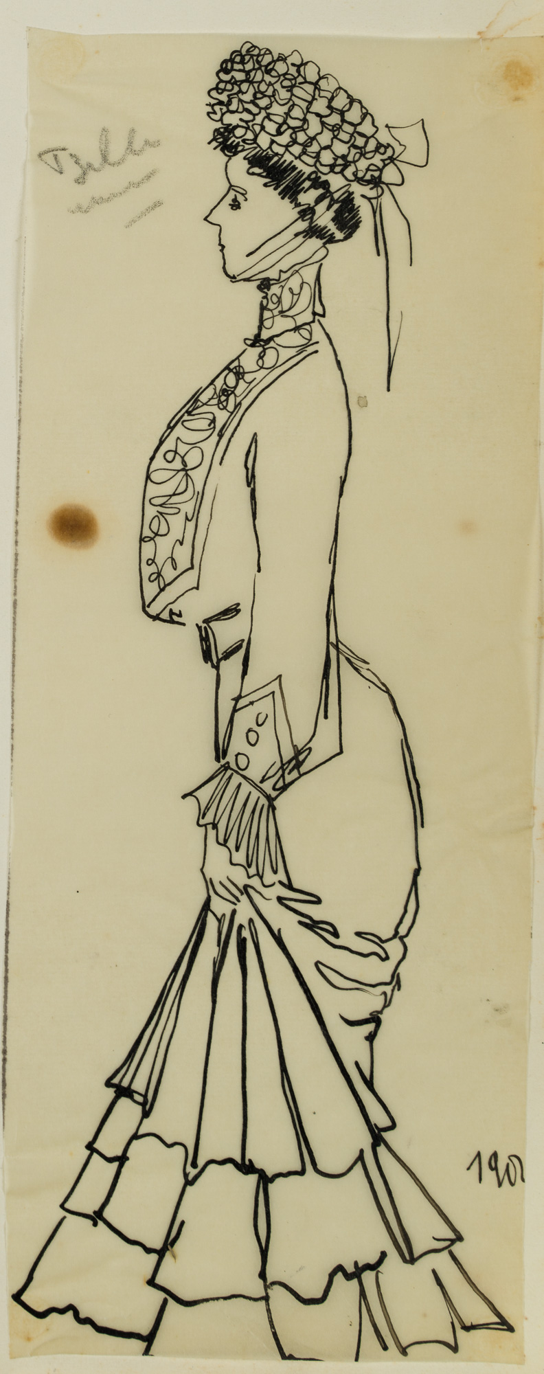 The drawings were partly made for the publication “150 Jahre Weltgeschichte für die Dame. Nach zeitgenössischen Berichten und Vorlagen” (150 years of world history for the lady), which dealt with the fashion of the 19th and early 20th century. It was published in 1955 under the editorship of Erhard KLEPPER.