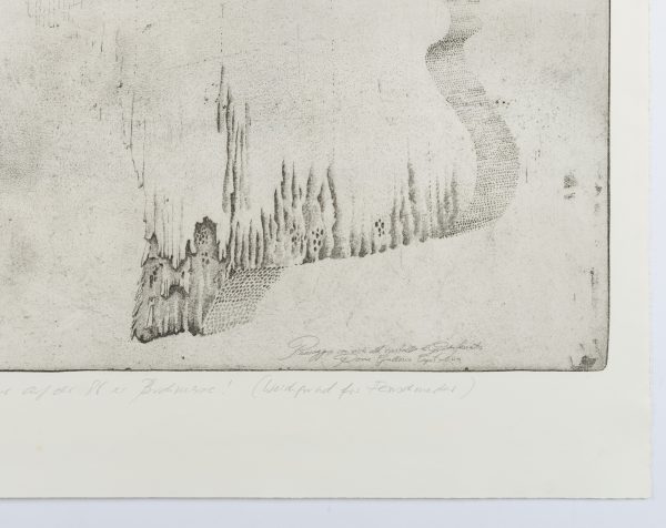 - Inscription: lower left signed: “EWahrmut Mayer”. Lower middle inscribed in the printing plate: “Domenico Zampieri | Paesaggio con vista del castello di Grotaferata Roma Galleria Capitolina”. Upper left dated: “22 agosta 85”. Lower middle further inscription: “für Herrn Klärcher auf de 86er Buchmesse! (Weichgrund für Feinschmecker)”.