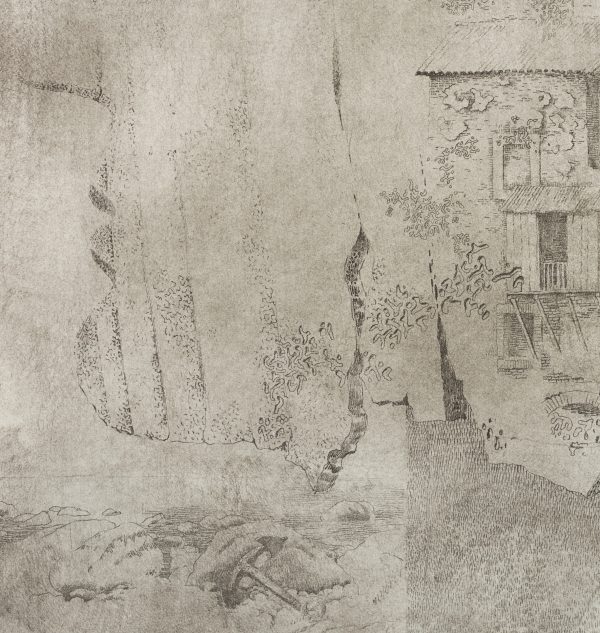 - Beschreibung: Collage aus Landschafts- und Architekturfragmenten. So zusammengesetzt, dass sich Gesichter, Augen, Masken oder Seitenprofile entdecken lassen.
