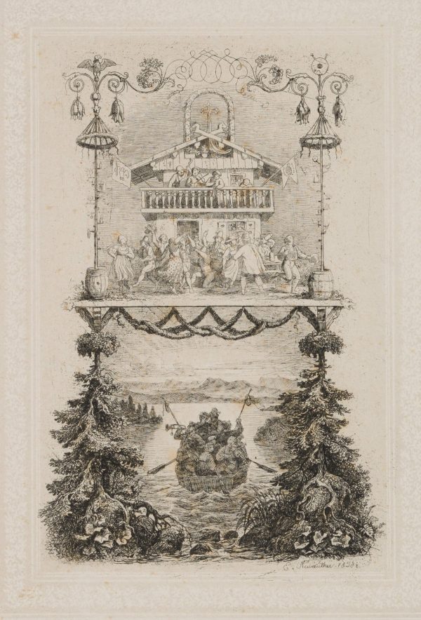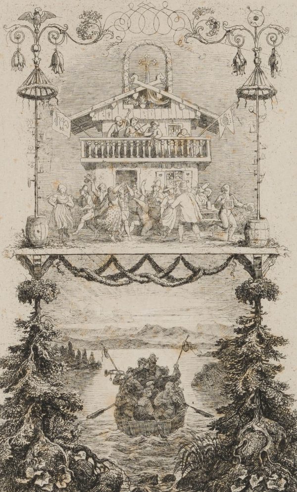 Eugen Napoleon Neureuther (1806 München – 1882 ebd.), NEUREUTHER, Bauernhochzeit und heitere Kahnfahrt, um 1838, Radierung