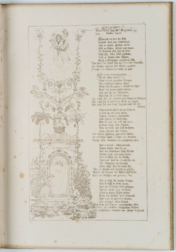 - Beschreibung: benannt “Randzeichnungen zu Goethe’s Balladen und Romanzen/von Eugen Neureuther/1829”, erschienen im Verlag der “Cotta’schen Buchhandlung”.