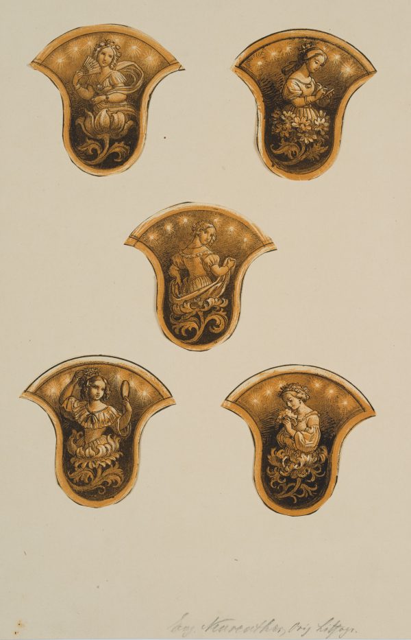 E. NEUREUTHER (*1806), Weibliche Figuren & Arabesken, Romantik Botanisch