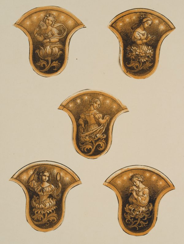 Eugen Napoleon Neureuther (1806 Munich – 1882 ibid.), Cut-out Lithographs with Female Figures & Arabesques, 19th century, Lithography
