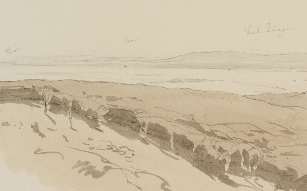 Eduard Peithner von Lichtenfels (1833 Wien – 1913 Berlin), Slowakische Hügellandschaft, 19. Jahrhundert, Pinselzeichnung