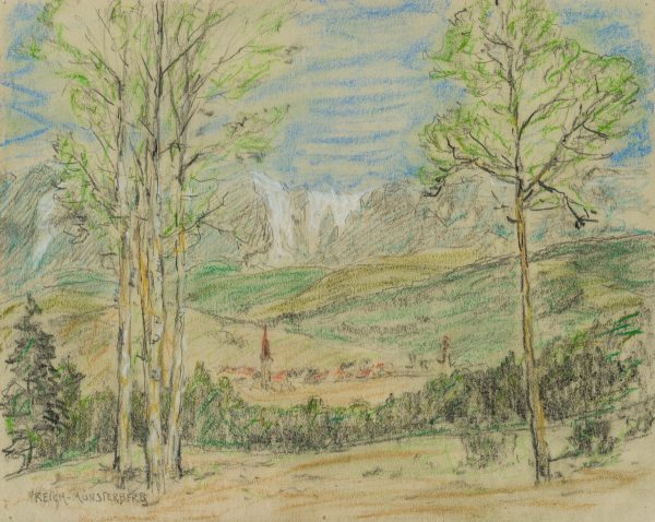 Eugen Reich-Münsterberg (1866 Münsterberg – 1943 Berlin), Alpine Landschaft, 19. Jahrhundert, Kreide