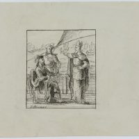 Emmery Rondahl (1858 Vordingborg – 1914 Copenhagen), Bishop and king on the deck of a ship, 1875, Pen drawing