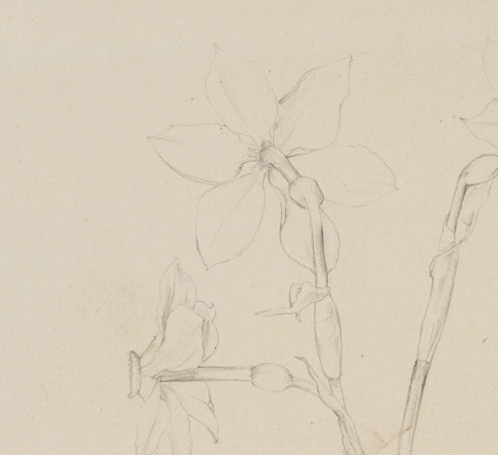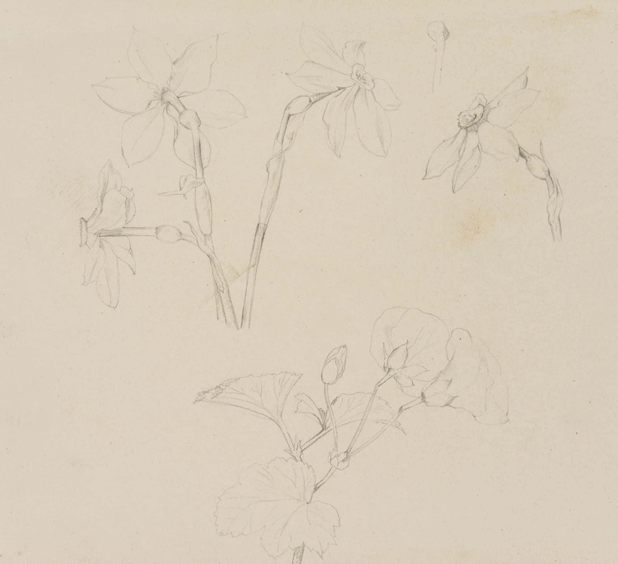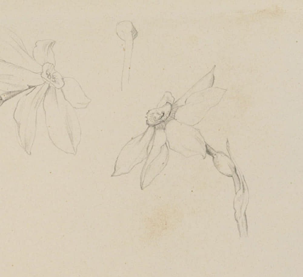 Emmery Rondahl (1858 Vordingborg – 1914 Copenhagen), Poet’s daffodil and plant studies, c. 1885, Pencil