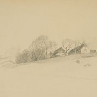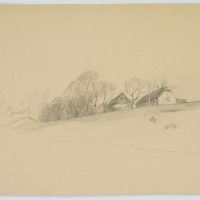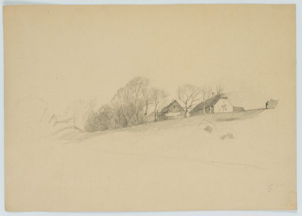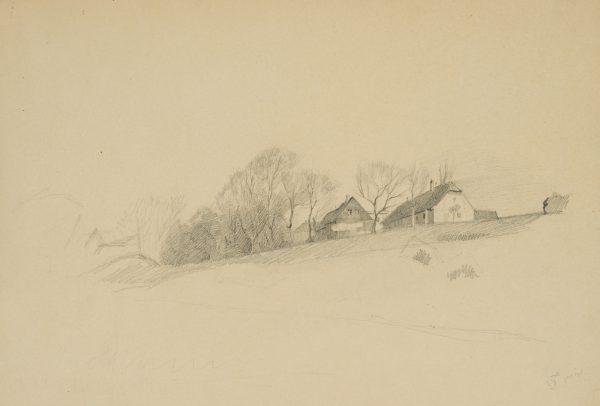 Emmery Rondahl (1858 Vordingborg – 1914 Copenhagen), Homestead in picturesque landscape, c. 1880, Pencil