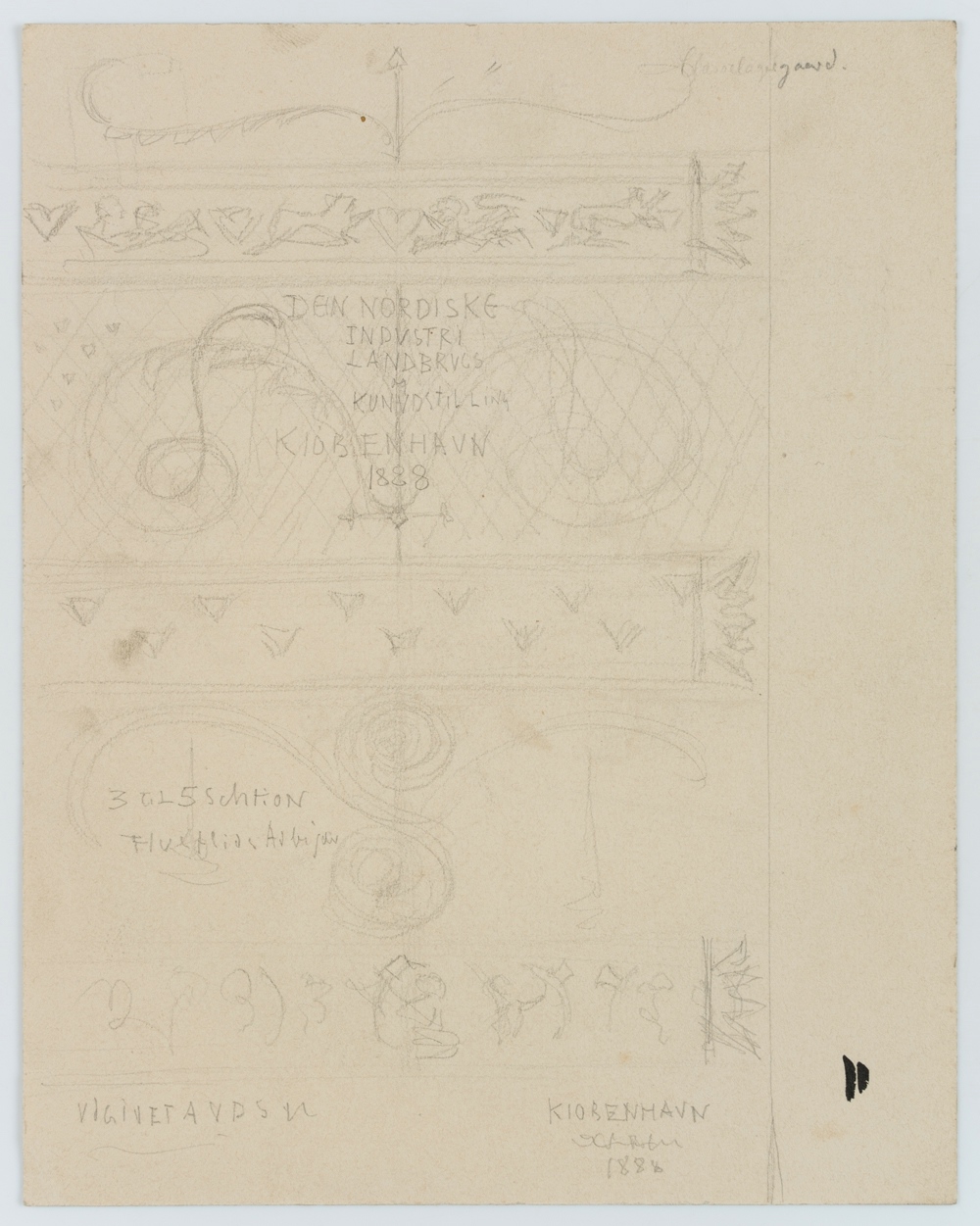 • Inscription: On the reverse is a design in pencil for a poster for “Den Nordiske Industri Landbrugs og Kunndstilling Kobenhavn 1888”.