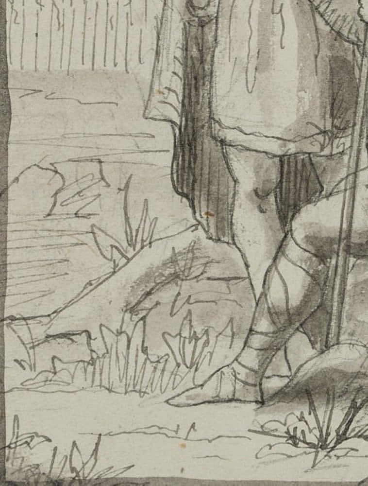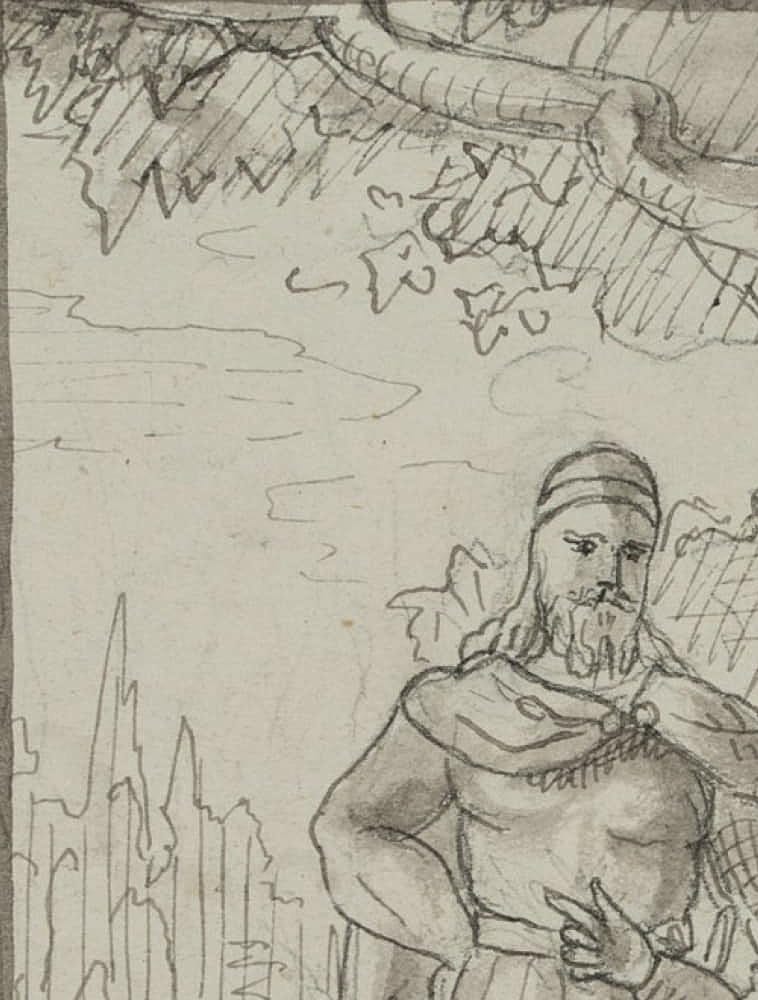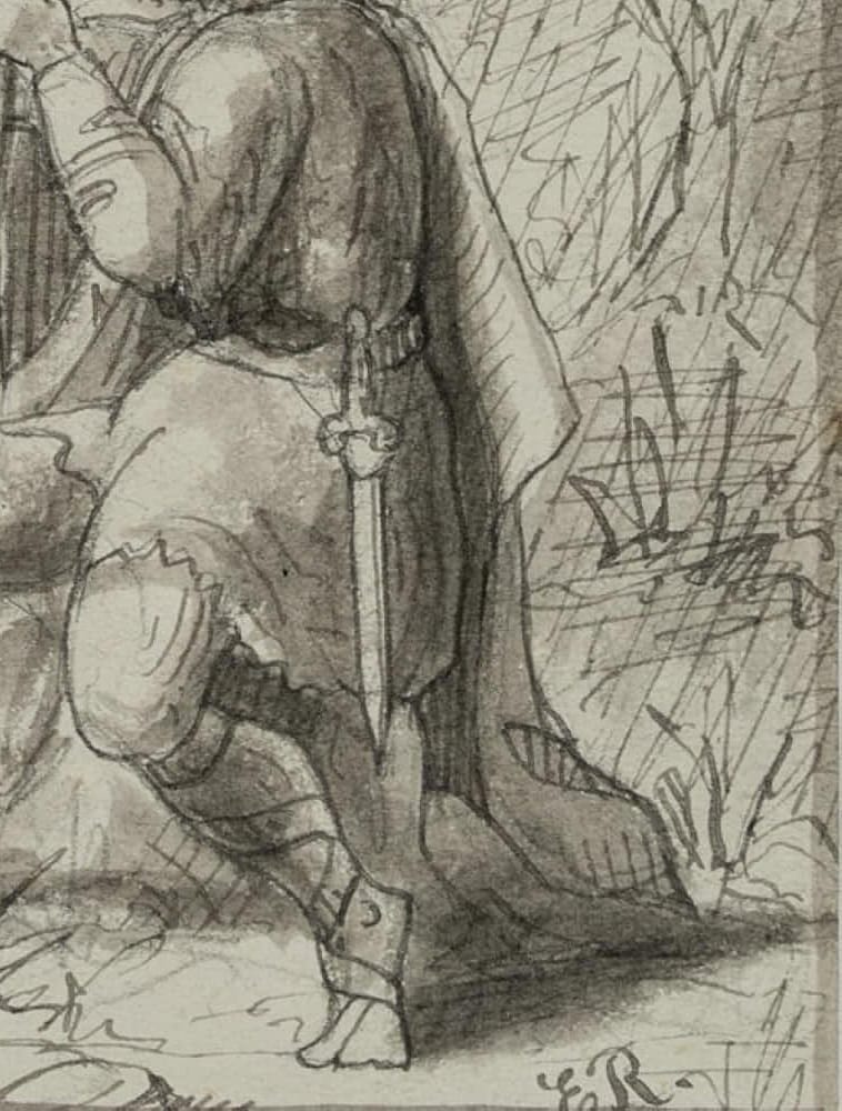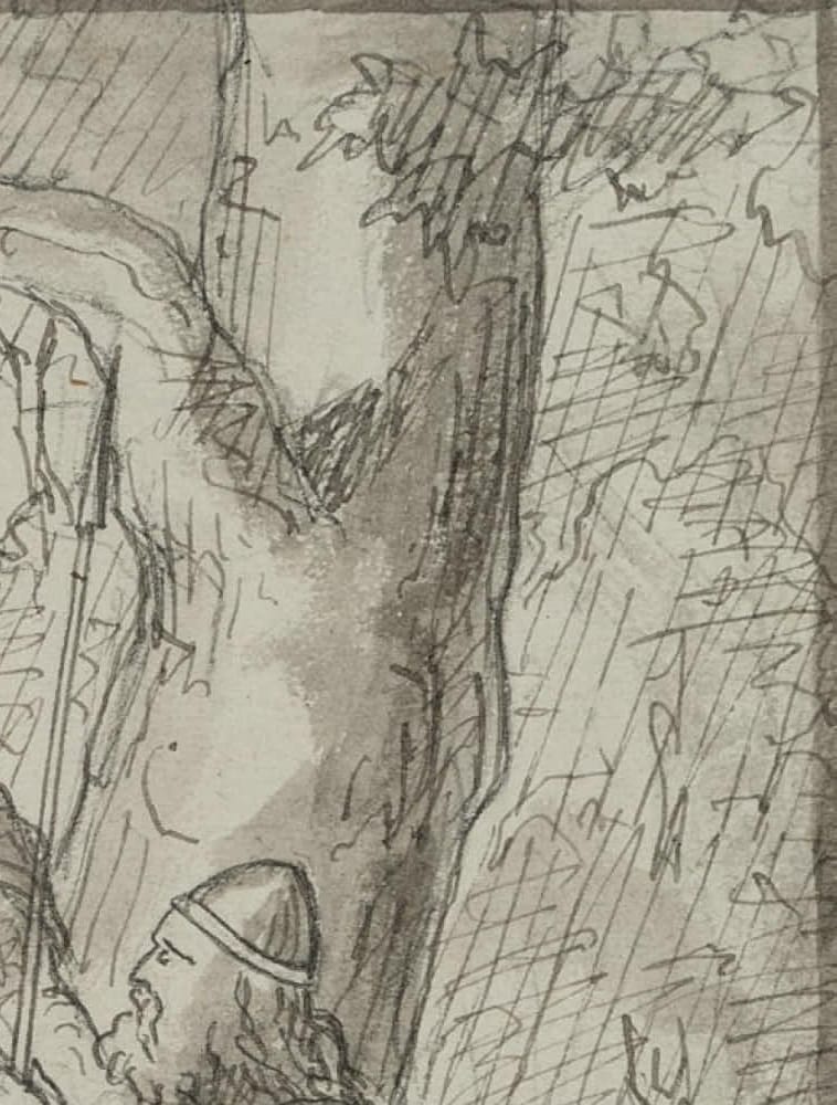 Emmery Rondahl (1858 Vordingborg – 1914 Copenhagen), Knud Lavard’s Murder in Haraldsted Forest, 1875, Pen drawing
