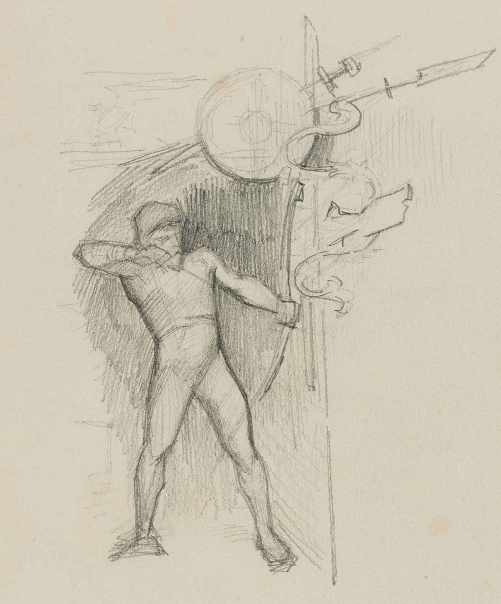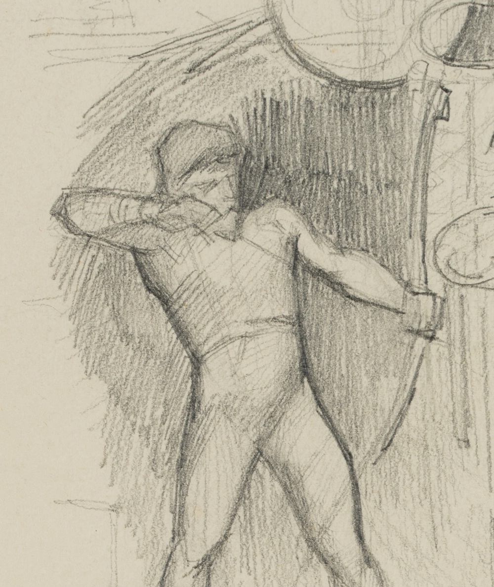 Emmery Rondahl (1858 Vordingborg – 1914 Kopenhagen), Nordischer Bogenschütze, 1884, Bleistift