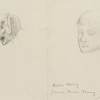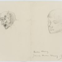 Emmery Rondahl (1858 Vordingborg – 1914 Kopenhagen), Porträtskizze und Teufelsmaske, um 1910, Bleistift