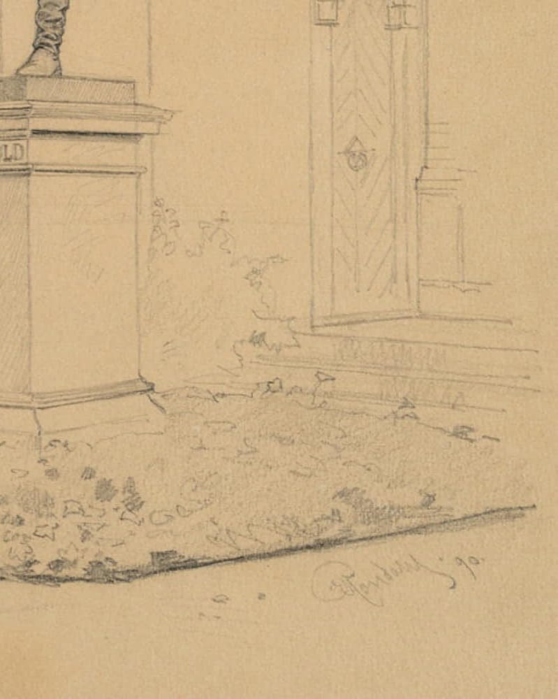 Emmery Rondahl (1858 Vordingborg – 1914 Kopenhagen), Statue des Marineoffiziers Tordenskiolds in Trondheim, 1890, Bleistift
