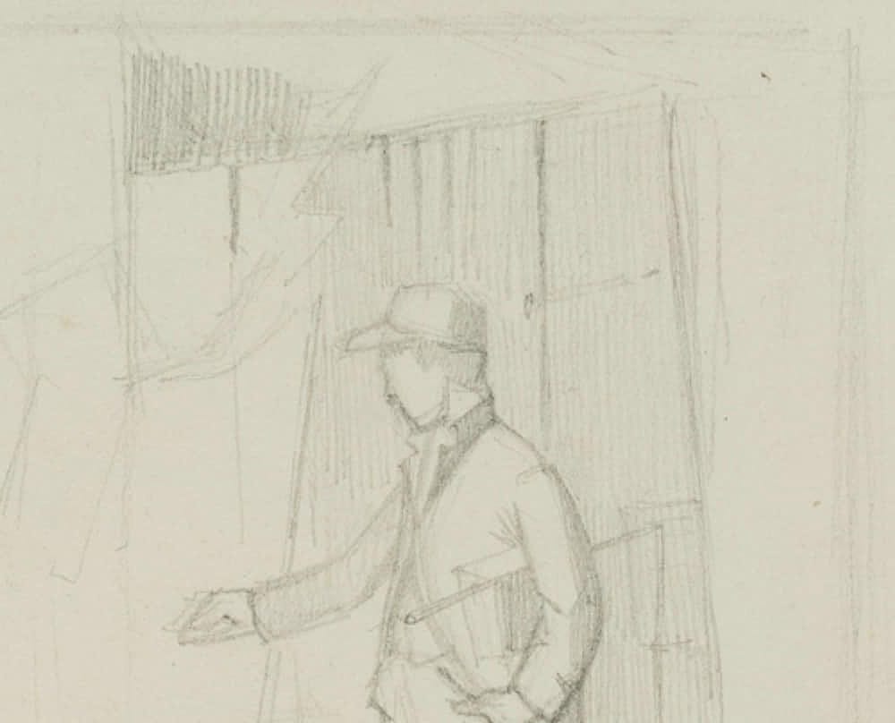 Emmery Rondahl (1858 Vordingborg – 1914 Copenhagen), Study Sheet, Man with Dog, 1881, 1881, Pencil