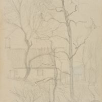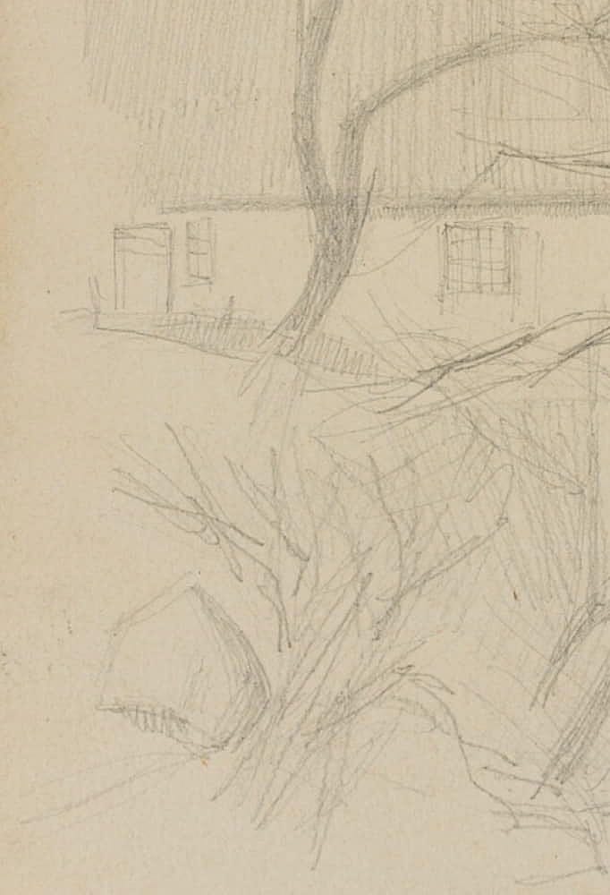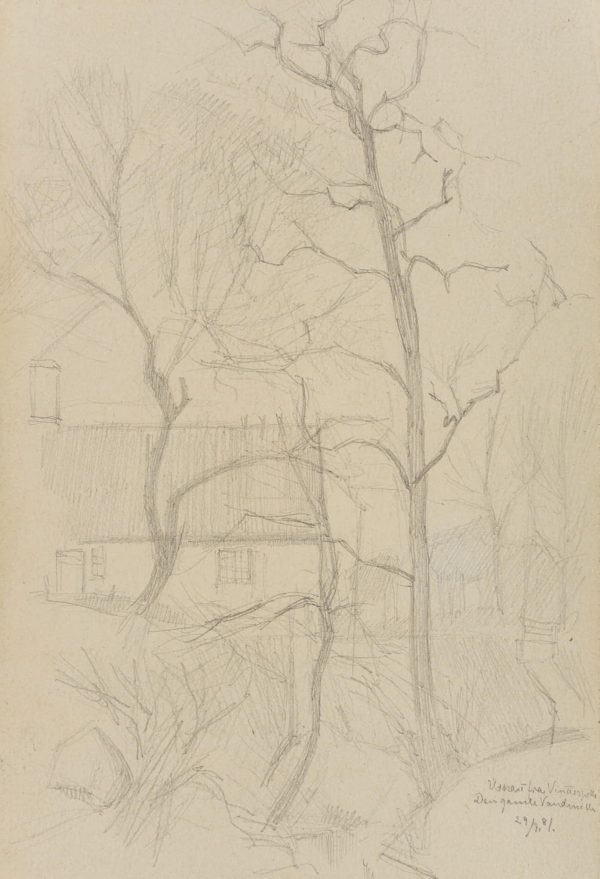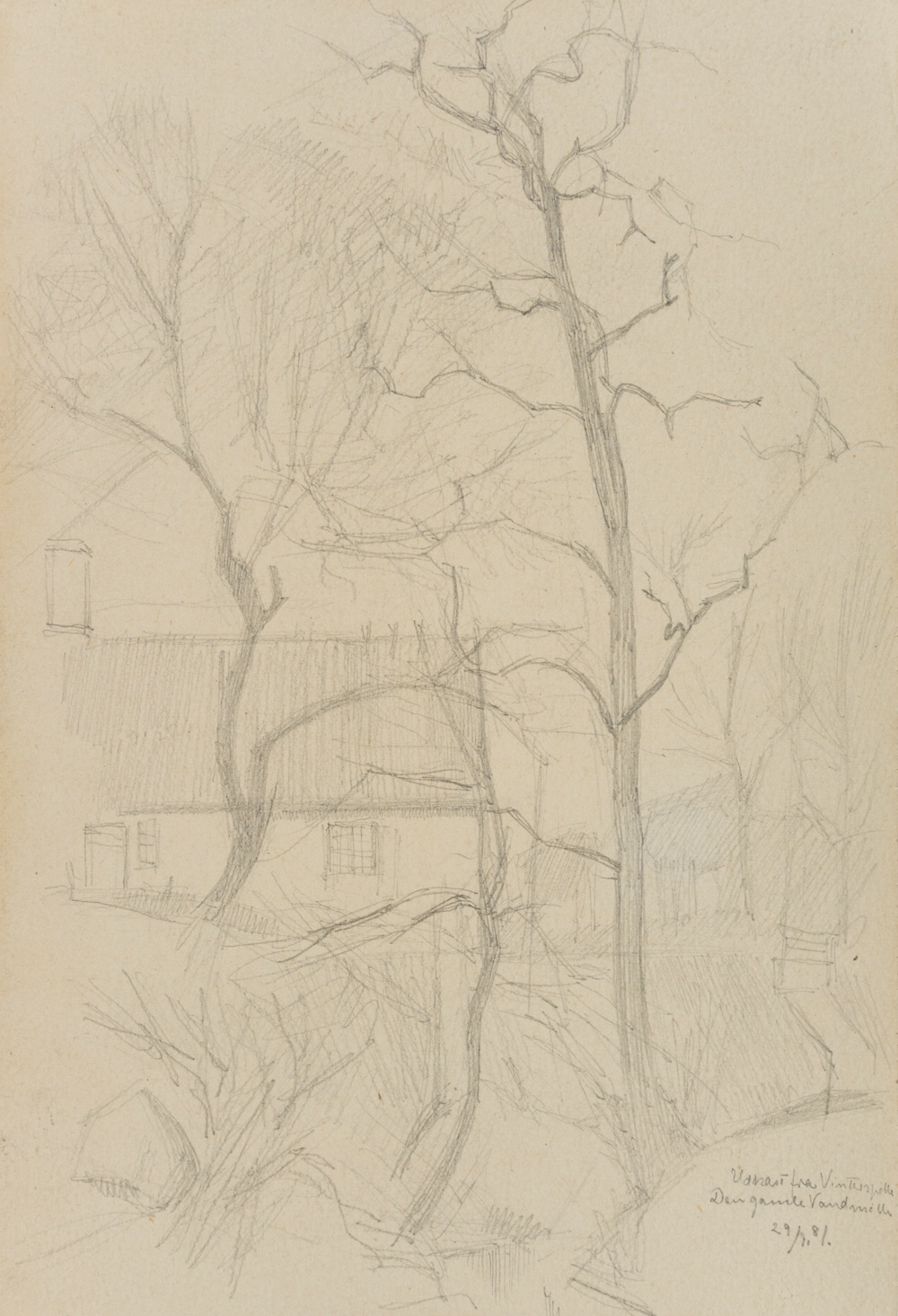 Emmery Rondahl (1858 Vordingborg – 1914 Copenhagen), Winter atmosphere at the old water mill, 1881, Pencil